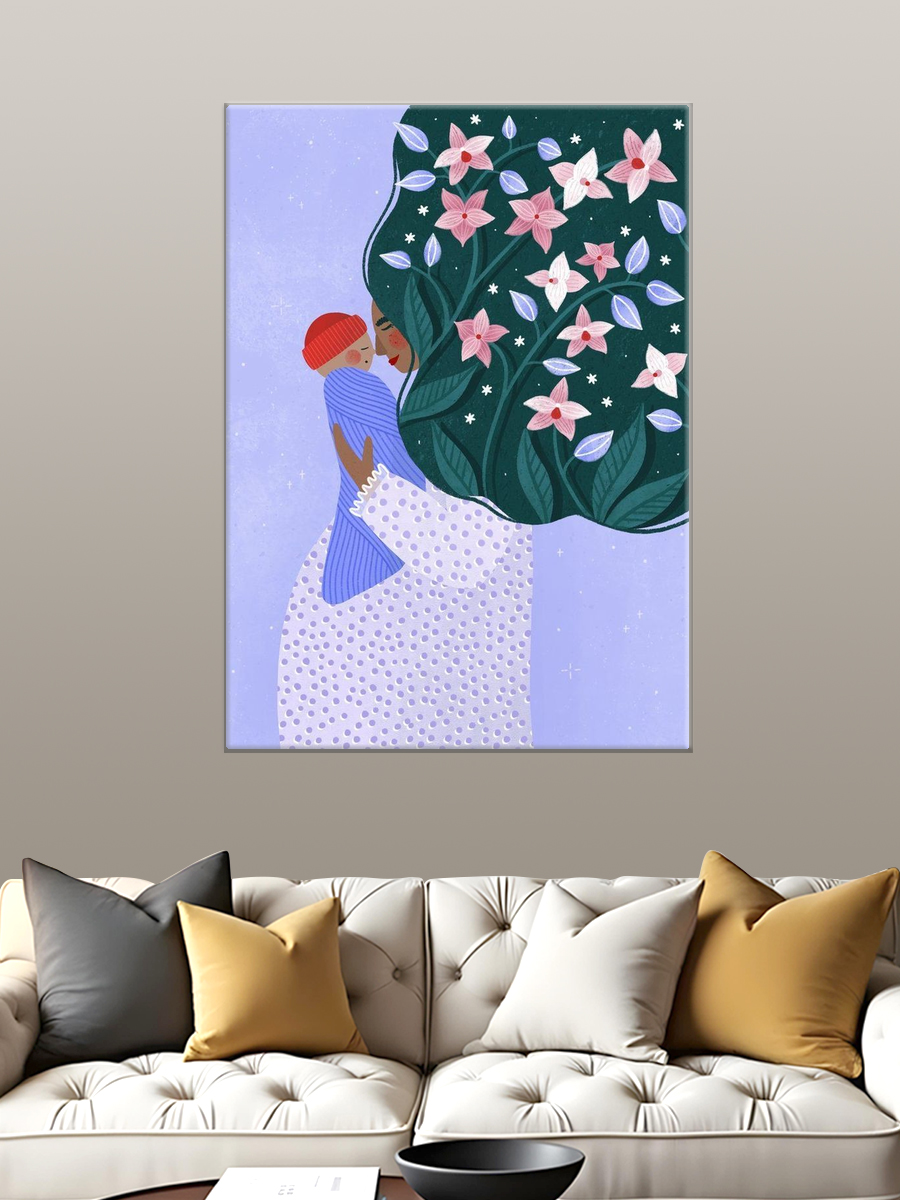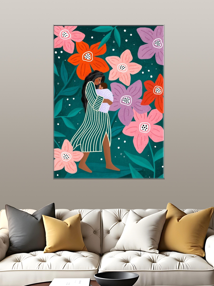 Описание: Картина 50 на 70 "Материнская любовь" изображает трогательный момент между матерью и её ребенком. В центре композиции — женщина, обнимающая малыша, а её волосы украшены яркими цветами, символизирующими заботу и нежность. Уникальность этой картины заключается в сочетании простоты и глубины чувств, которые она передает. Она вызывает тепло и умиротворение, напоминая о важности семейных уз и любви. Эмоции, которые вызывает это произведение, могут наполнить ваше пространство светом и добротой. Она вдохновляет на размышления о семье, заботе и связи между поколениями. Это идеальное дополнение для вашего дома, которое будет радовать глаз и поднимать настроение. Картина отлично впишется в интерьер детской комнаты, создавая атмосферу уюта и безопасности. Также её можно разместить в гостиной или спальне, где она станет центром внимания и будет напоминать о любви и заботе. Уникальный стиль и яркие цвета делают её универсальным элементом декора, который будет гармонировать с различными интерьерными решениями.