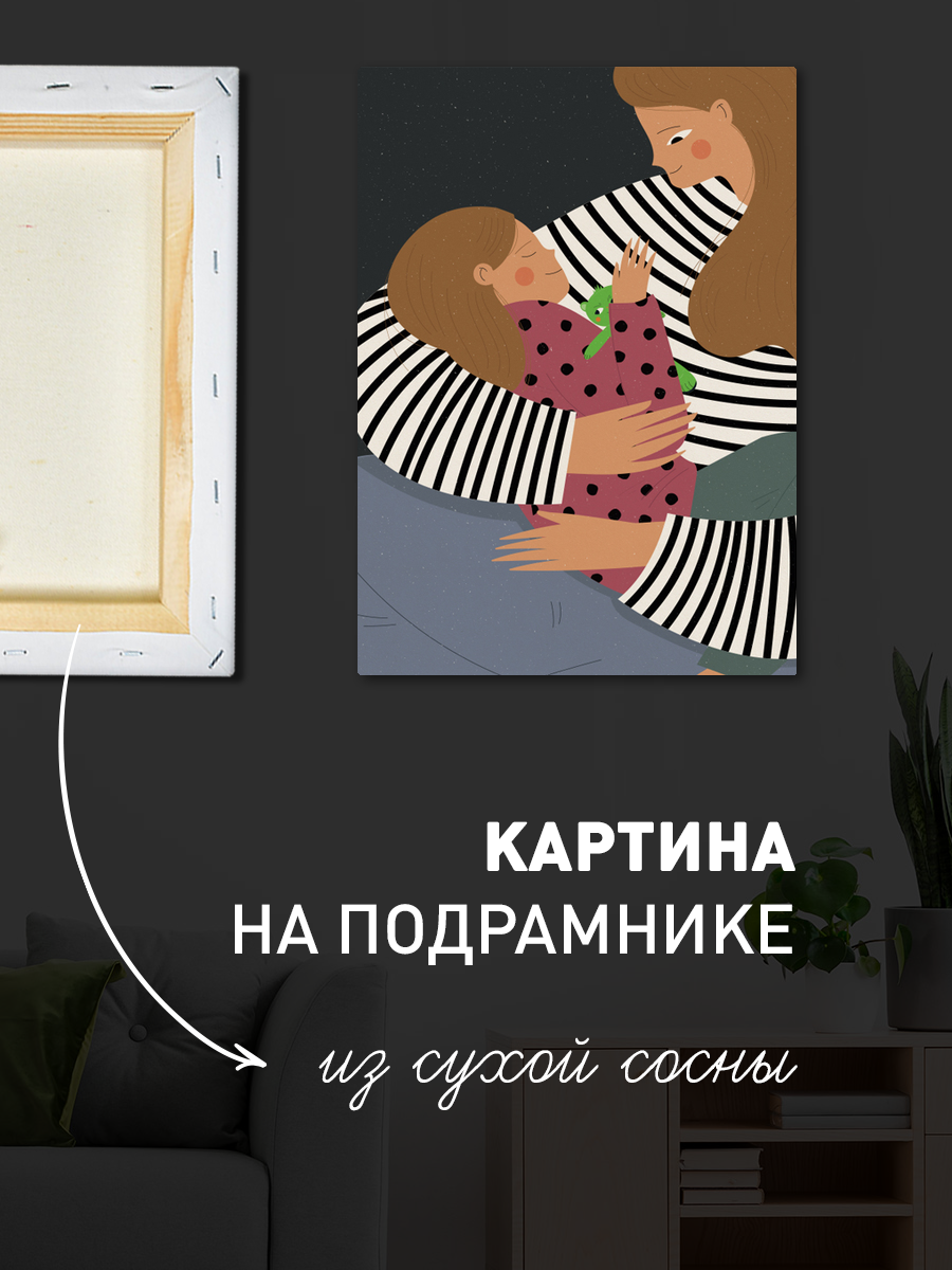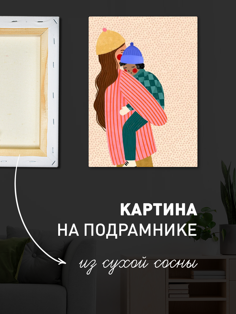 Описание: Картина 50 на 70 "Мама и малыш" — это яркое и трогательное произведение искусства, которое изображает нежные моменты материнства. На картине изображена мама, крепко держащая своего ребенка, что символизирует безусловную любовь и заботу. Яркие, но мягкие цвета создают атмосферу уюта и тепла, а утонченные детали делают картину уникальной и запоминающейся. Эта картина вызывает положительные эмоции, наполняя пространство нежностью и гармонией. Она идеально подходит для детских комнат, гостиных или спальней, добавляя в интерьер нотку тепла и заботы. Благодаря своему размеру, она станет акцентом на стене, привлекая внимание и вызывая улыбки у всех, кто её увидит. "Мама и малыш" — это не просто картина, это символ любви и уюта, который будет гармонично вписываться в любой интерьер, будь то современный, скандинавский или классический стиль. Она станет отличным подарком для мамы или для тех, кто ценит искусство, наполненное глубокими чувствами.