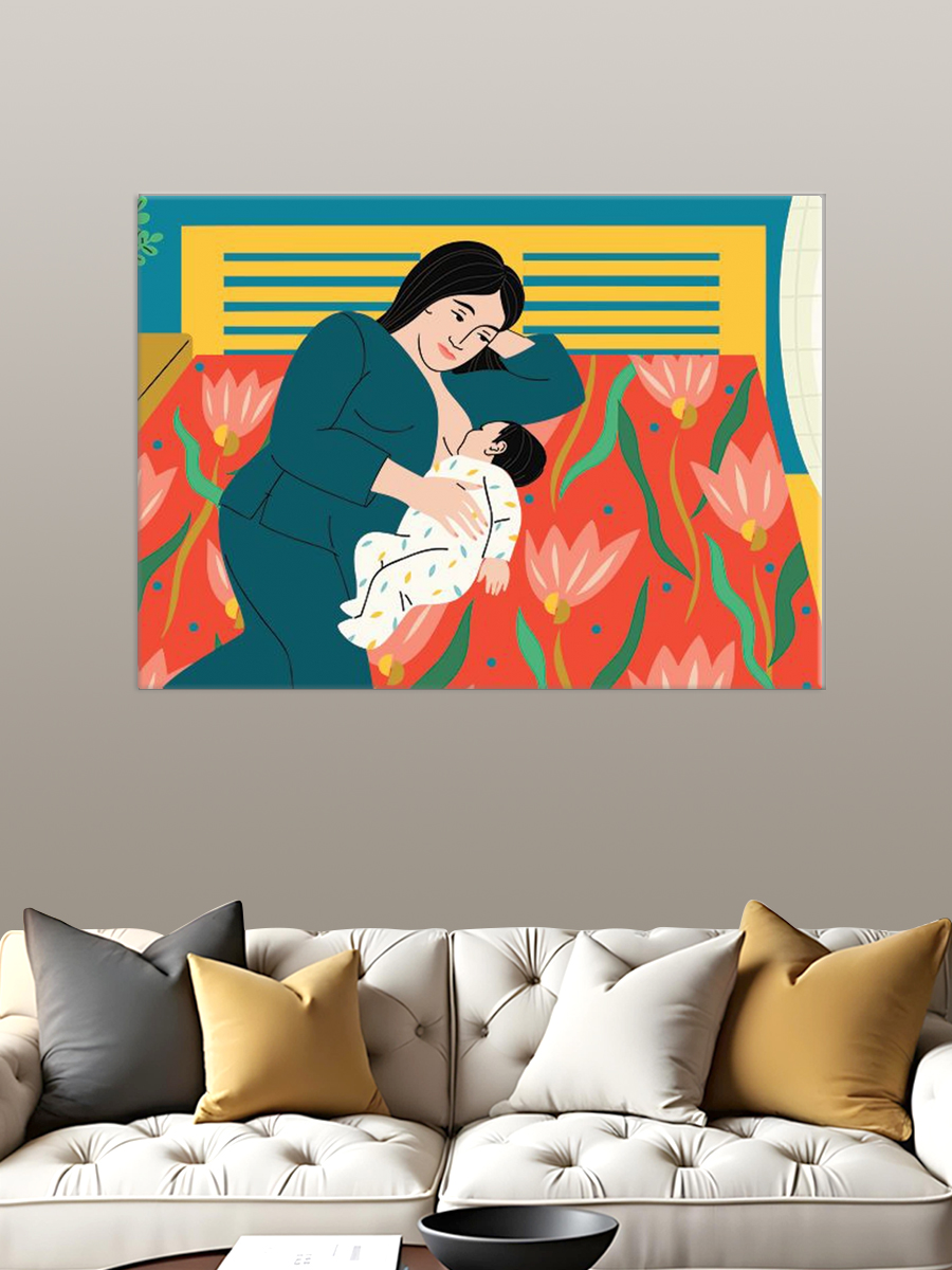Описание: Картина 50 на 70 'Материнская Нежность' изображает трогательный момент между матерью и её новорождённым ребёнком. На картине запечатлён процесс кормления, который символизирует любовь, заботу и нежность. Яркие и теплые цвета, такие как голубой и жёлтый, создают атмосферу уюта и гармонии. Эта уникальная работа привлекает внимание своей простотой и глубиной эмоций, вызывая у зрителя чувства тепла и спокойствия. При взгляде на картину, вам может показаться, что вы сами находитесь в этом моменте — вы ощущаете заботу и уют, которые исходят от матери к её ребёнку. Эта работа наполняет пространство светом и положительными эмоциями, создавая атмосферу любви и безопасности. Картину можно разместить в детской комнате, в спальне или в гостиной, где она станет центром внимания и источником вдохновения. Она отлично дополнит интерьер в стиле скандинавского минимализма или современного, добавляя яркий акцент на фоне нейтральных тонов. 'Материнская Нежность' станет прекрасным подарком для новых родителей, подчеркивая важность материнства и семейных ценностей. Эта картина не просто украшение, а символ любви и заботы, который будет радовать глаз и согревать душу каждый день.