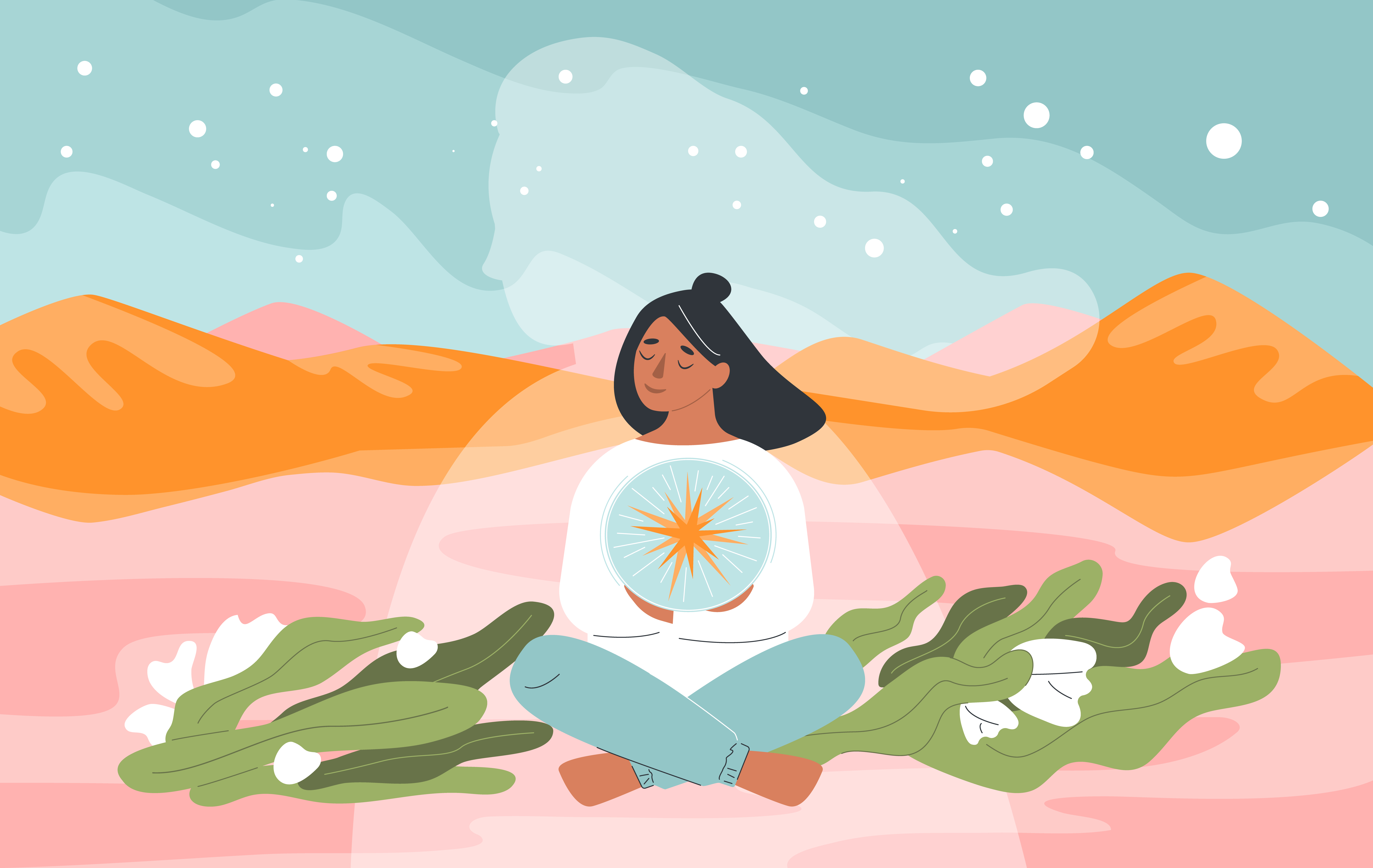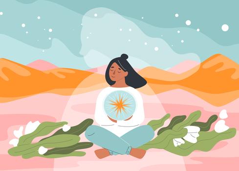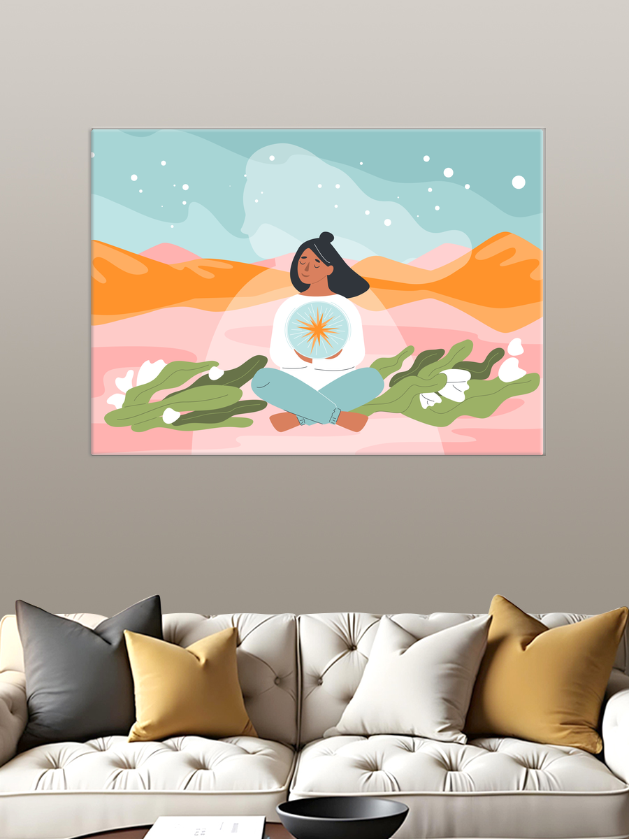 Описание: Картина 50 на 70 "Свет внутреннего мира" изображает спокойную женщину, сидящую в медитации на фоне живописного пейзажа. Она окружена зелеными растениями и цветами, а в руках держит символ, отражающий её внутренний свет. Эта работа передает идею гармонии и единства с природой, вдохновляя зрителя на поиски душевного спокойствия. Картина наполнена мягкими, пастельными цветами, которые создают уютную и расслабляющую атмосферу. Она вызывает чувство умиротворения и помогает отвлечься от повседневной суеты. "Свет внутреннего мира" станет идеальным акцентом для спальни, кабинета или зоны для йоги, добавляя нотку спокойствия и свежести в любое пространство. Она прекрасно впишется в интерьеры в стиле минимализм, скандинавском или бохо, подчеркивая элегантность и утонченность. Эта картина не только украсит вашу стену, но и станет источником вдохновения и спокойствия в вашем доме.