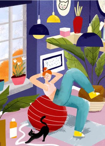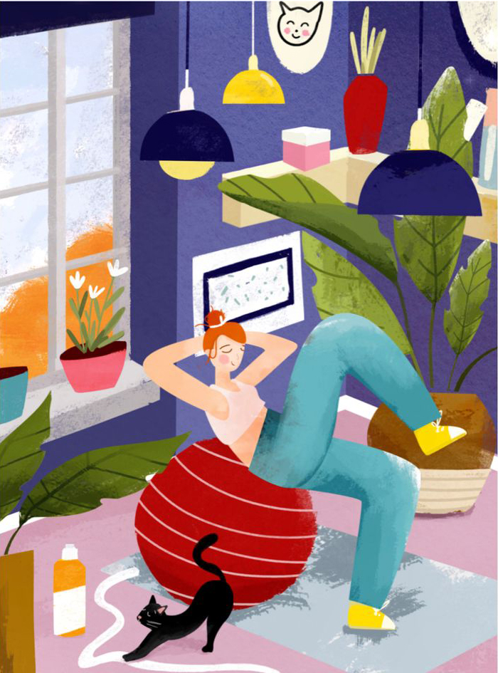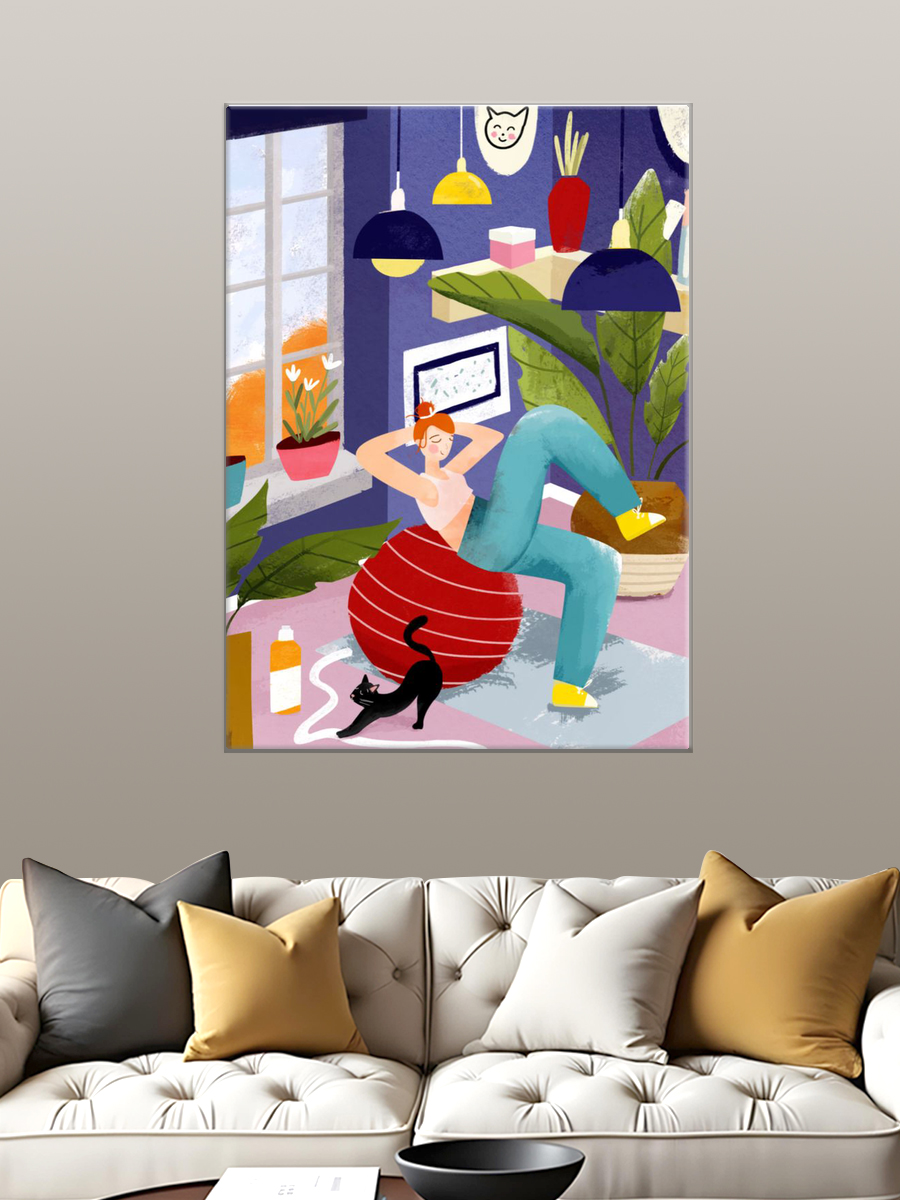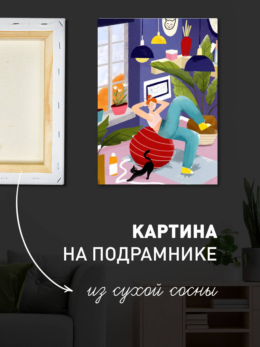 Описание: Картина 50 на 70 'Уютный момент'. На этой яркой и жизнерадостной картине изображена женщина, занимающаяся спортом на фитболе, в окружении уютного домашнего интерьера. Яркие акценты в виде зеленых растений, красных и желтых деталей создают атмосферу теплоты и уюта. Эта работа передает идею о важности заботы о себе и гармонии с окружающим пространством. Картина вызывает положительные эмоции, наполняя пространство энергией и вдохновением. Она способна создать ощущение спокойствия и радости, позволяя каждому, кто её видит, ощутить позитив и стремление к активной жизни. Она идеально подойдет для современных интерьеров – будь то гостиная, спальня или домашний офис. Повесив её на стену, вы добавите яркий акцент в ваше пространство, который будет вдохновлять и радовать вас каждый день. Эта картина станет не только украшением вашего дома, но и напоминанием о том, как важно находить время для себя и своих увлечений.