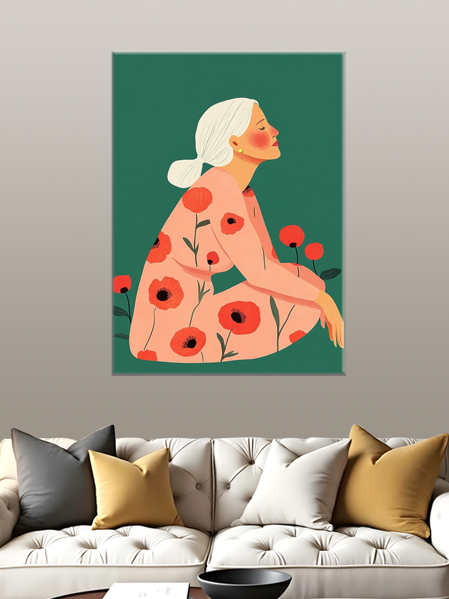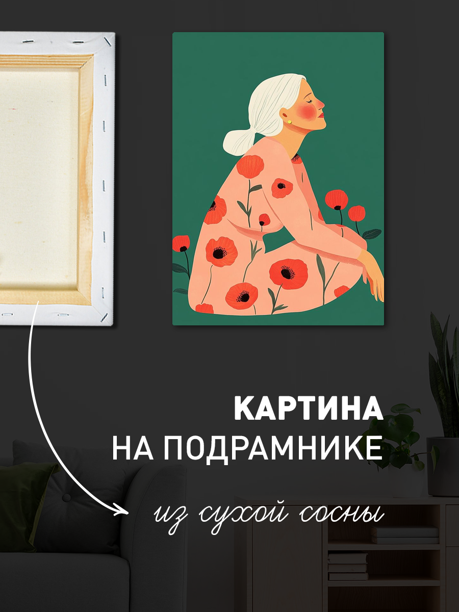 Описание: Картина 50 на 70 "Женщина среди цветов" - это удивительное произведение искусства, которое привлекает внимание своим ярким и гармоничным сочетанием цветов. На картине изображена женщина с белыми волосами, сидящая в спокойной и умиротворяющей позе. Её наряд украшен яркими красными маковыми цветами, что символизирует жизненную силу и красоту. Фон картины выполнен в насыщенном зеленом цвете, который создает контраст и подчеркивает теплоту и мягкость образа женщины. Эта картина вызывает положительные эмоции и создает атмосферу покоя и гармонии в любом интерьере. Она словно приглашает зрителя остановиться на мгновение, задуматься о чем-то важном и насладиться моментом. Яркие цветовые акценты наполняют пространство жизнью и позитивом, что делает её идеальным дополнением для вашего дома. "Женщина среди цветов" прекрасно подойдет для гостиной, спальни или кабинета, добавляя уют и стиль в любое пространство. Она станет отличным акцентом на стене, привлекая взгляды и вызывая интерес у гостей. Эта картина — не просто элемент декора, а настоящее произведение искусства, способное изменить атмосферу вашего дома и наполнить его ощущением красоты и спокойствия. Рассмотрите возможность повесить её в месте, где вы часто проводите время, чтобы каждый раз наслаждаться её магией и вдохновением.