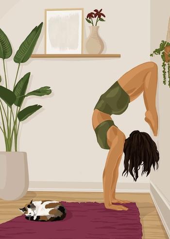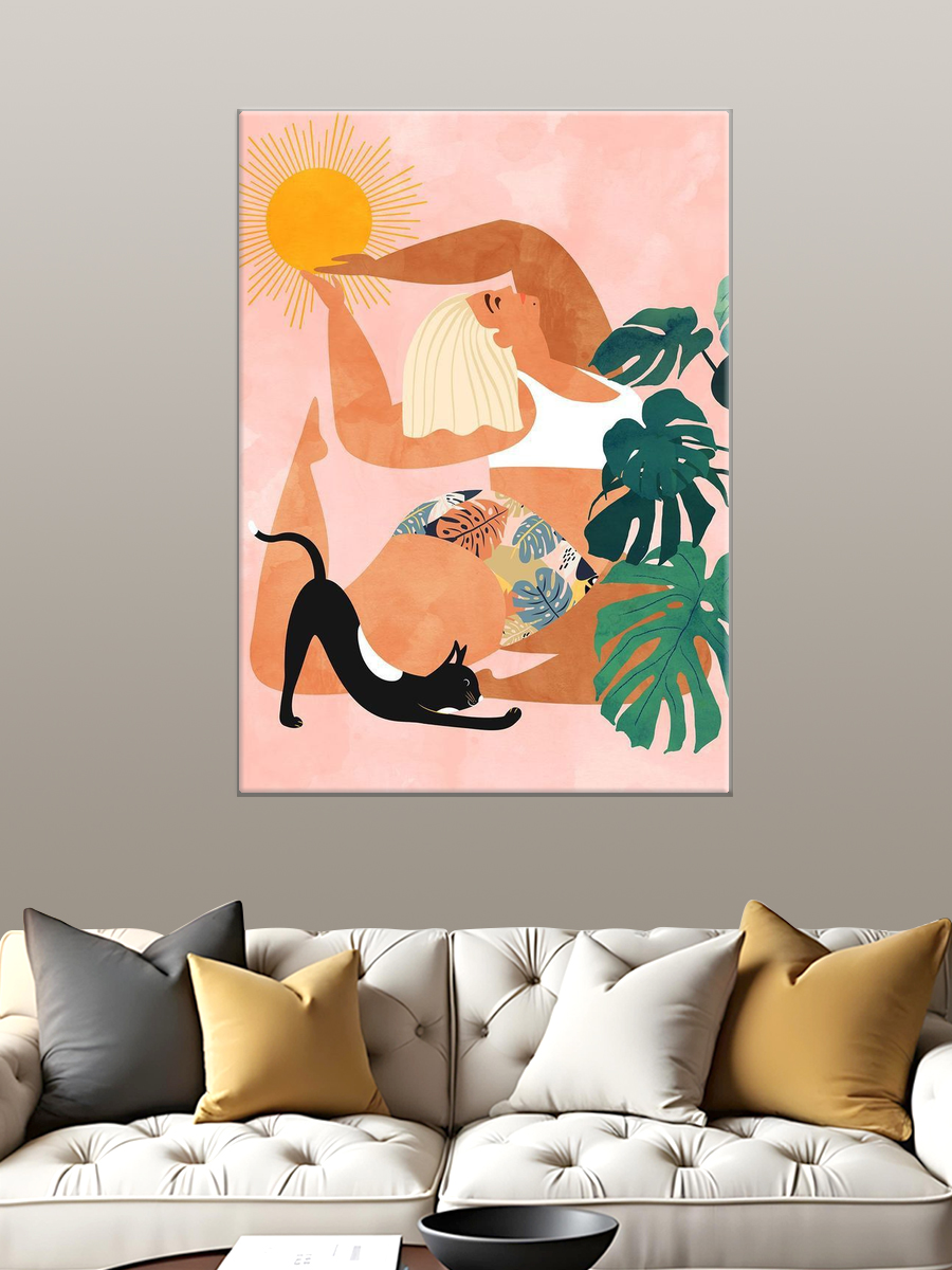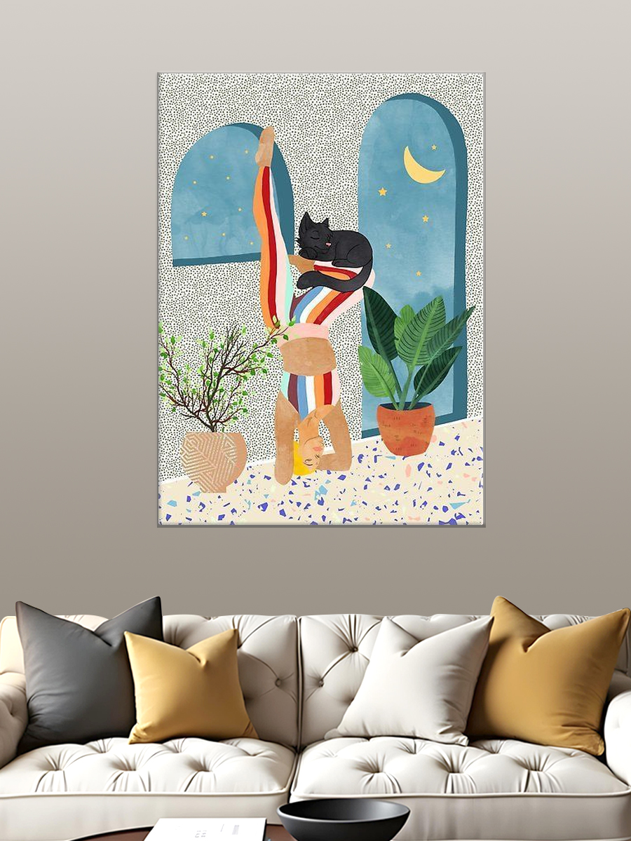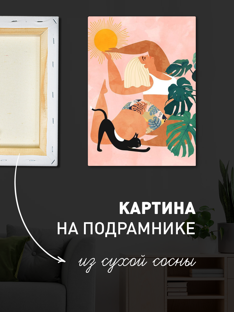 Описание: Картина 50 на 70 "Йога и умиротворение" представляет собой изящное изображение женщины, выполняющей асану йоги у стены, с уютным котом, мирно спящим на мягком ковре. Эта картина передает атмосферу спокойствия и гармонии, подчеркивая важность внутреннего мира и баланса в повседневной жизни. Каждый элемент картины тщательно продуман: мягкие цвета и плавные линии создают ощущение умиротворения. Женщина в позе на руках символизирует силу и грацию, а котик добавляет уют и тепло в общую композицию. Эта картина поможет вам сосредоточиться на своем внутреннем состоянии и вдохновит на практику йоги и медитации. Она будет прекрасно смотреться в спальне или в кабинете, создавая атмосферу спокойствия и уюта. Также картина станет отличным дополнением к пространству, где вы занимаетесь йогой или медитацией, визуально поддерживая ваше стремление к гармонии. Подвесив ее в гостиной, вы удивите гостей и создадите непринужденную, расслабляющую атмосферу. Эта работа станет не только элементом декора, но и источником вдохновения для вас и ваших близких.