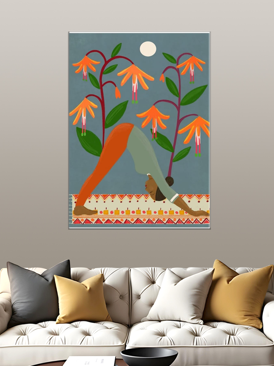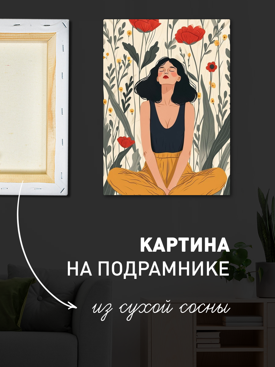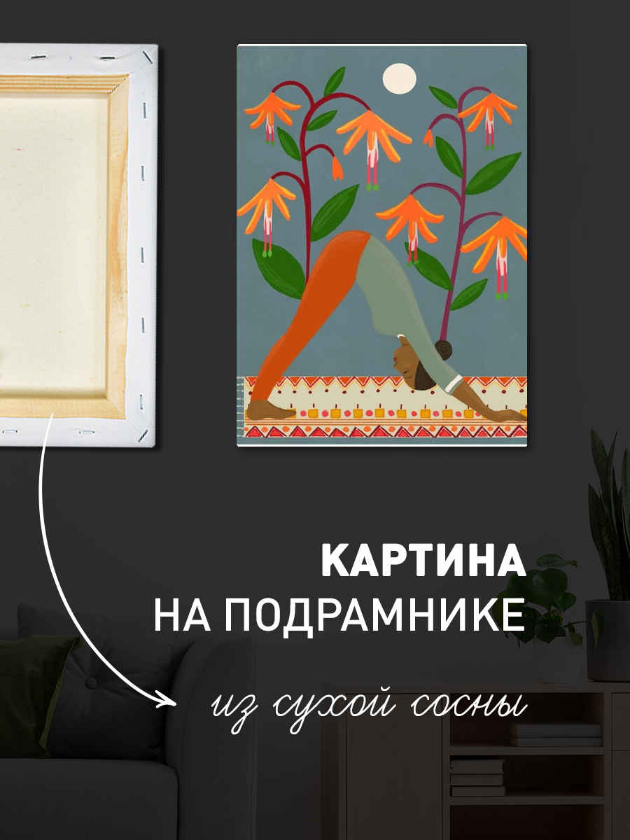 Описание: Картина 50 на 70 "Вдохновение из природы". На этой яркой и жизнеутверждающей картине изображена женщина, выполняющая позу йоги, окруженная великолепными цветами. Основная идея этой картины - гармония между человеком и природой, отражающая внутренний покой и баланс. Уникальность работы заключается в использовании ярких цветов и выразительных форм, которые создают ощущение движения и жизни. Эта картина вызывает теплые и позитивные эмоции, напоминая о важности заботы о себе и гармонии с окружающим миром. Она может стать источником вдохновения и умиротворения в вашем доме, создавая атмосферу спокойствия и уюта. Картина прекрасно впишется в любое современное или уютное пространство: в гостиной, спальне, кабинете или даже в студии йоги. Ее яркие цвета и выразительная композиция привлекут внимание и станут отличным акцентом в интерьере. Повесьте ее на стену, чтобы каждый день наслаждаться ею и получать заряд положительной энергии.