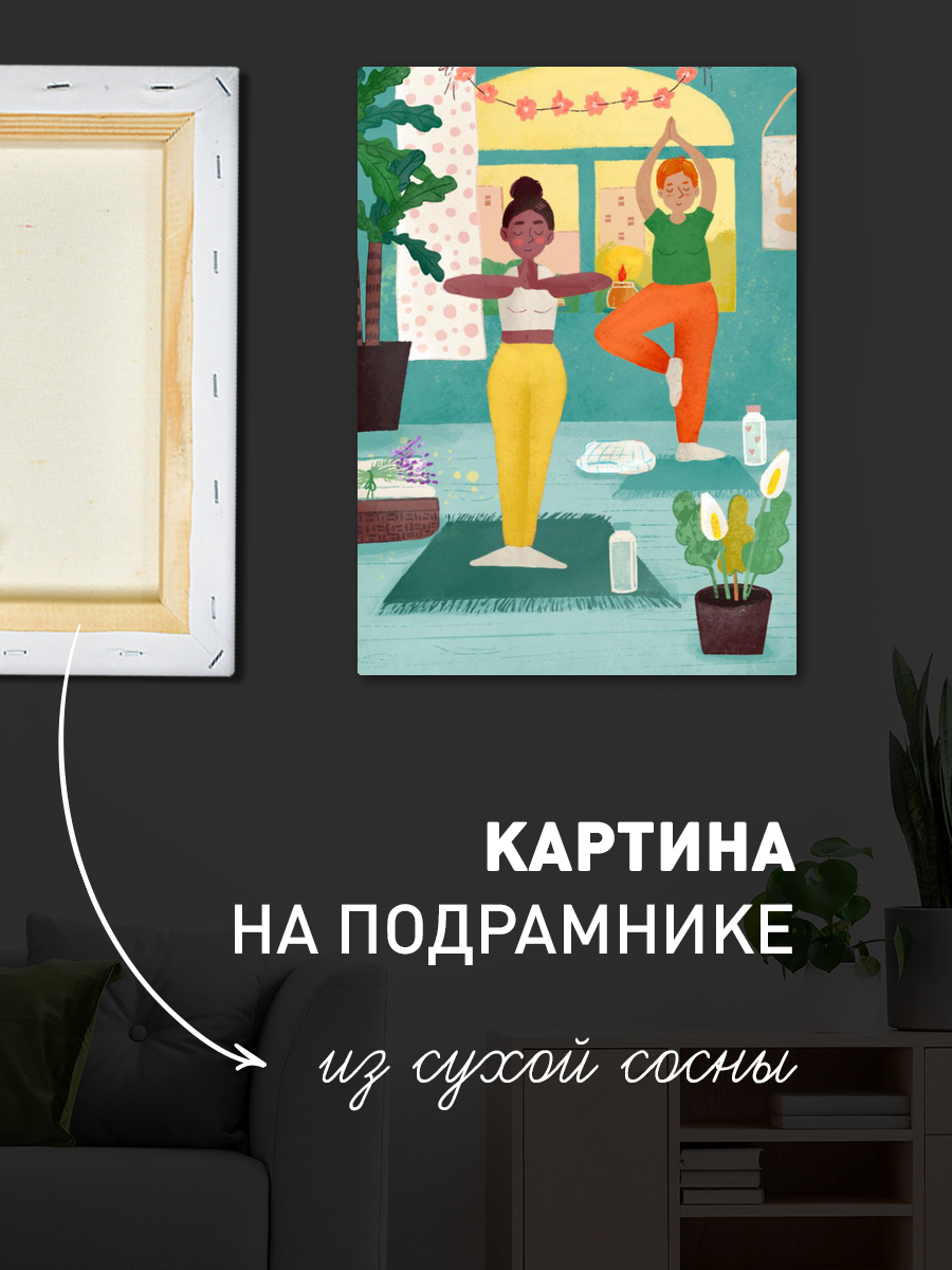 Описание: Картина 50 на 70 'Уютные моменты'. На этом произведении искусства изображены две женщины, занимающиеся йогой в светлом и уютном пространстве. Пространство наполнено зелеными растениями, придающими живость и свежесть, что символизирует гармонию с природой и внутренний баланс. Уникальность картины заключается в её способности передать атмосферу спокойствия и умиротворения, приглашая зрителя в мир медитации и самопознания. Эта картина вызывает теплые и позитивные эмоции, наполняя пространство светом и радостью. В ней чувствуется вдохновение и желание заботиться о себе, что делает её идеальным дополнением к вашему интерьеру. Она станет акцентом в любой комнате, будь то гостиная, спальня или даже студия для занятий йогой. 'Уютные моменты' отлично впишется в современные интерьеры, оформленные в стиле минимализма или эко-дизайна. Её мягкие цвета и гармоничные формы создадут атмосферу уюта и расслабления, помогая вам и вашим близким чувствовать себя комфортно и спокойно. Повесьте эту картину на стену, и она будет вдохновлять вас каждый день, напоминая о важности заботы о себе и нахождении гармонии в жизни.