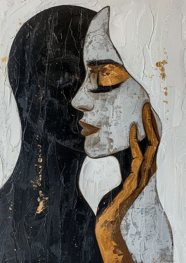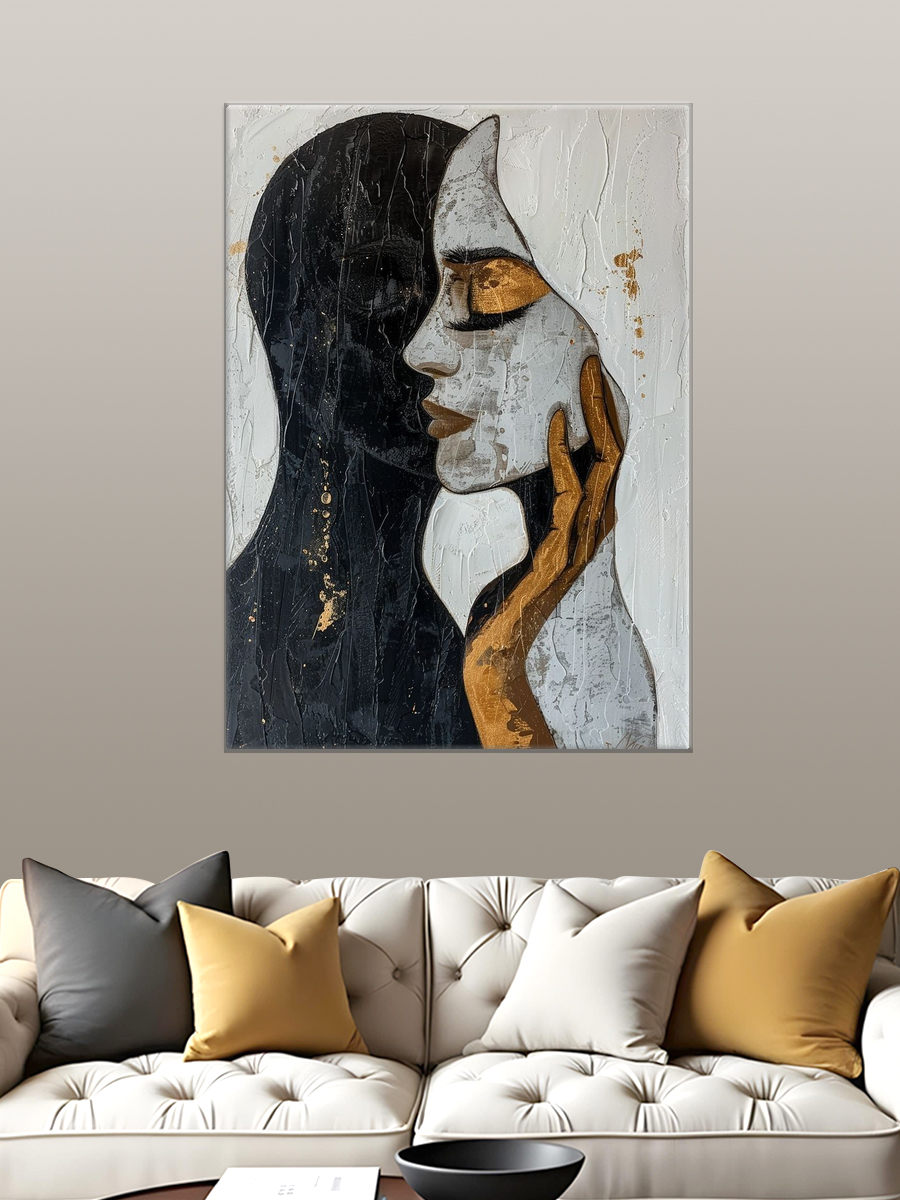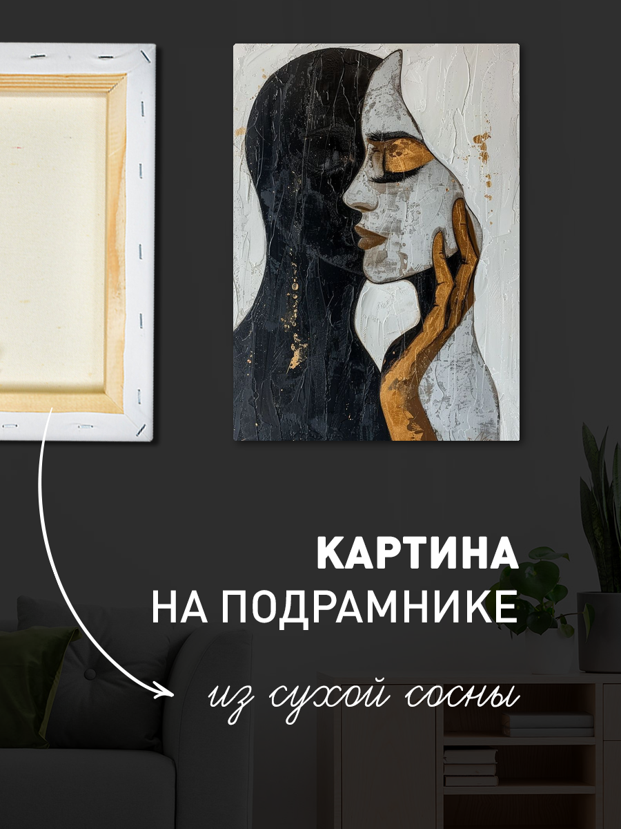 Описание: Картина 50 на 70 "Поцелуй двух душ" представляет собой удивительное художественное произведение, на котором изображены две лица, плавно переходящие друг в друга, олицетворяя единство и гармонию. Основная идея картины заключается в выражении глубоких чувств любви и привязанности, что делает её уникальной и запоминающейся. Эта картина вызывает множество эмоций: от нежности до умиротворения. Она способна наполнить пространство теплом и уютом, создавая атмосферу романтики и спокойствия. Глядя на неё, вы почувствуете, как внутри вас пробуждаются чувства и воспоминания о близости и доверии. Картина идеально впишется в любой интерьер — будь то гостиная, спальня или даже офис. Она станет изысканным акцентом на стене, привлекающим внимание и вызывающим интерес у гостей. Сочетание черного, белого и золотого цветов делает её универсальной, подходящей как для современных, так и для классических интерьеров. Добавьте в своё пространство частичку искусства, которая не только украсит ваш дом, но и станет источником вдохновения и положительных эмоций каждый день.