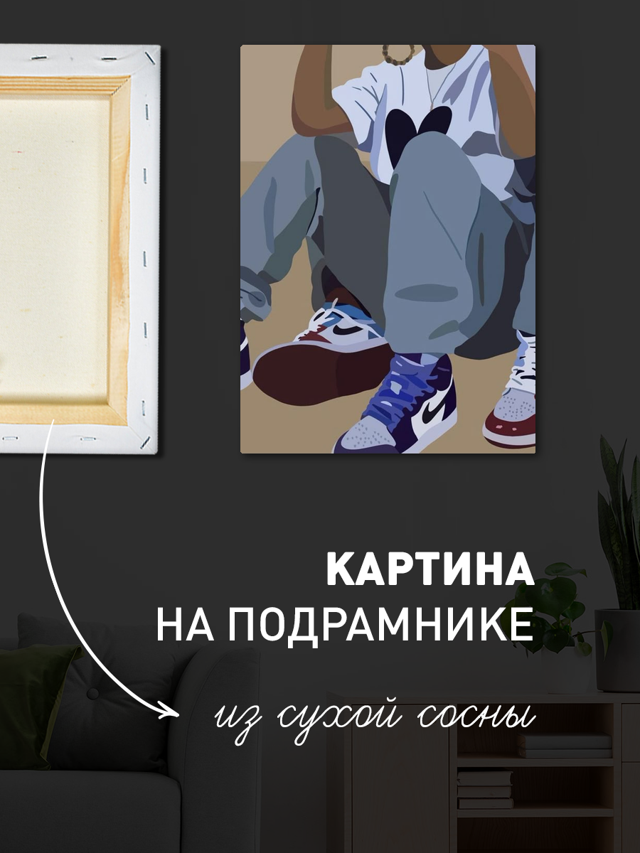 Описание: Картина 50 на 70 "Уличный стиль" представляет собой яркое и динамичное изображение, в центре которого находятся персонажи, одетые в стильную и современную уличную одежду. Их расслабленная поза и уникальный стиль обуви создают атмосферу молодёжной культуры и самовыражения. Основная идея картины заключается в праздновании индивидуальности и свободы, что делает её особенно привлекательной для тех, кто ценит уникальность и креативность в искусстве. Эта картина вызывает чувственные эмоции радости и ностальгии, напоминая о том, как важно быть собой и следовать своим увлечениям. Яркие цвета и интересные детали привлекают внимание и наполняют пространство энергией, делая его более живым и стильным. Она станет отличным акцентом в любом интерьере, добавляя в него нотки креативности и уличного стиля. Картина прекрасно подойдет для модных студий, креативных офисов, а также для уютных гостиных и молодежных комнат. Ее можно повесить на стену рядом с другими произведениями искусства или как самостоятельный акцент, чтобы создать уникальную атмосферу в вашем пространстве. "Уличный стиль" — это не просто картина, это частичка современности, которая вдохновляет и заряжает энергией.