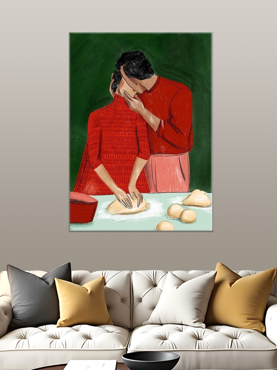 Описание: Картина 50 на 70 "Нежные мгновения". На этом произведении изображена трогательная сцена, где пара готовит тесто вместе, создавая атмосферу уюта и любви. Основная идея картины заключается в том, что совместное времяпрепровождение и простые радости жизни, такие как готовка, могут стать источником счастья и гармонии. Уникальность картины проявляется в ярких, насыщенных цветах, которые создают теплую и дружелюбную атмосферу. Эта работа вызывает нежные чувства, пробуждая в зрителе воспоминания о семейных традициях и приятных моментах, проведенных с близкими. Картина станет отличным дополнением к интерьеру кухни или столовой, добавляя в пространство нотки уюта и тепла. Она также подойдет для гостиных, где ценят семейные ценности и домашний комфорт. "Нежные мгновения" станет не только украшением вашего дома, но и напоминанием о важности любви и взаимопонимания в каждодневной жизни.