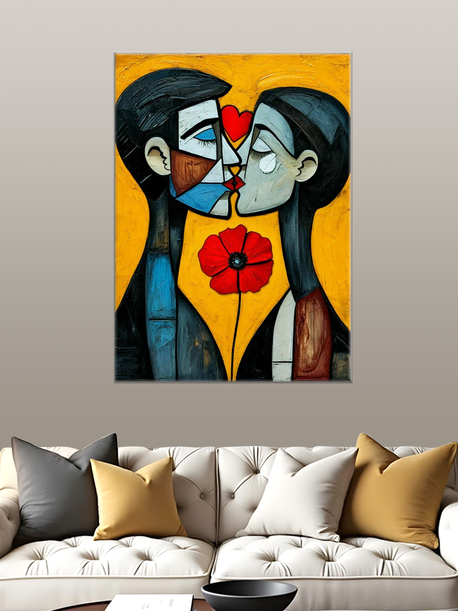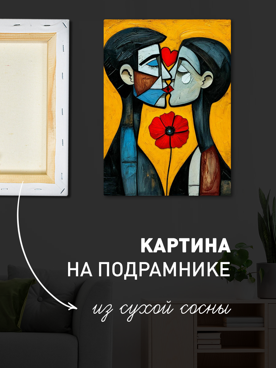 Описание: Картина 50 на 70 "Поцелуй" изображает трогательный момент между двумя влюблёнными, запечатлённый в ярких и насыщенных цветах. В центре композиции находятся два силуэта, которые нежно прикасаются губами, окружённые символом любви — красным цветком, подчеркивающим их чувства. Фон картины выполнен в ярком жёлтом цвете, что создает атмосферу тепла и радости, а контрастные элементы усиливают эмоциональную насыщенность изображения. Эта картина вызывает чувство нежности и романтики, придавая вашему пространству особую ауру любви и гармонии. Она станет отличным акцентом в любом интерьере, подходя как для спальни, так и для гостиной, добавляя яркие эмоции и стиль. Уместно будет повесить её над диваном, в уголке для чтения или в любом месте, где вы хотите создать атмосферу уюта и положительных эмоций. С уникальной палитрой и выразительными формами, "Поцелуй" станет не только украшением вашего дома, но и источником вдохновения и хорошего настроения для всех, кто его увидит.