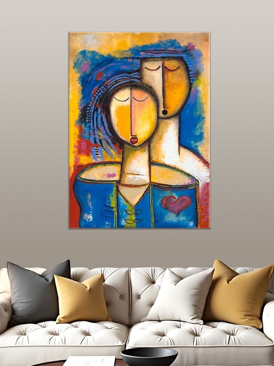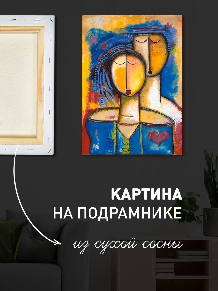 Описание: Картина 50 на 70 'Слияние душ' представляет собой яркий и эмоциональный холст, где два абстрактных персонажа с закрытыми глазами олицетворяют глубокую связь и единство. Основная идея картины заключается в выражении любви и гармонии через простые, но выразительные формы. Уникальность этой работы заключается в насыщенной цветовой палитре, которая создает атмосферу тепла и уюта. Каждый взгляд на 'Слияние душ' вызывает чувства спокойствия и умиротворения. Яркие оттенки и плавные линии перенесут вас в мир, где царит любовь и понимание. Эта картина станет прекрасным акцентом в вашем интерьере, добавляя ему жизненную энергию и позитив. Картина идеально подойдет для гостиной, спальни или кабинета, гармонично вписываясь в современный или эклектичный стиль. Она станет не только украшением вашего пространства, но и источником вдохновения и положительных эмоций для вас и ваших близких.