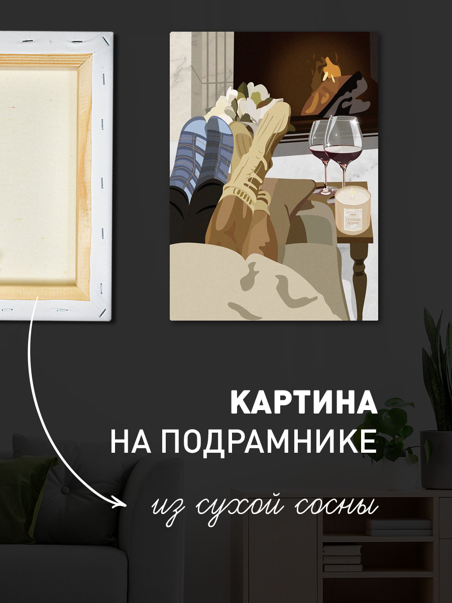 Описание: Картина 50 на 70 'Уютный Вечер' изображает расслабляющую сцену, где два человека наслаждаются временем у камина. На картине видны уютные ноги в теплых носках, рядом стоят два бокала красного вина и ароматная свеча, создающие атмосферу уюта и спокойствия. Эта работа передает идею совместного отдыха, тепла и близости, что делает её уникальной для тех, кто ценит моменты, проведенные вдали от суеты. Картина вызывает положительные эмоции, даря чувство домашнего уюта и расслабления. Она идеально впишется в гостиную, спальню или любое другое пространство, где люди собираются для общения и отдыха. Яркие, теплые цвета картины придадут вашему интерьеру атмосферу тепла и комфорта, делая его более привлекательным и уютным.