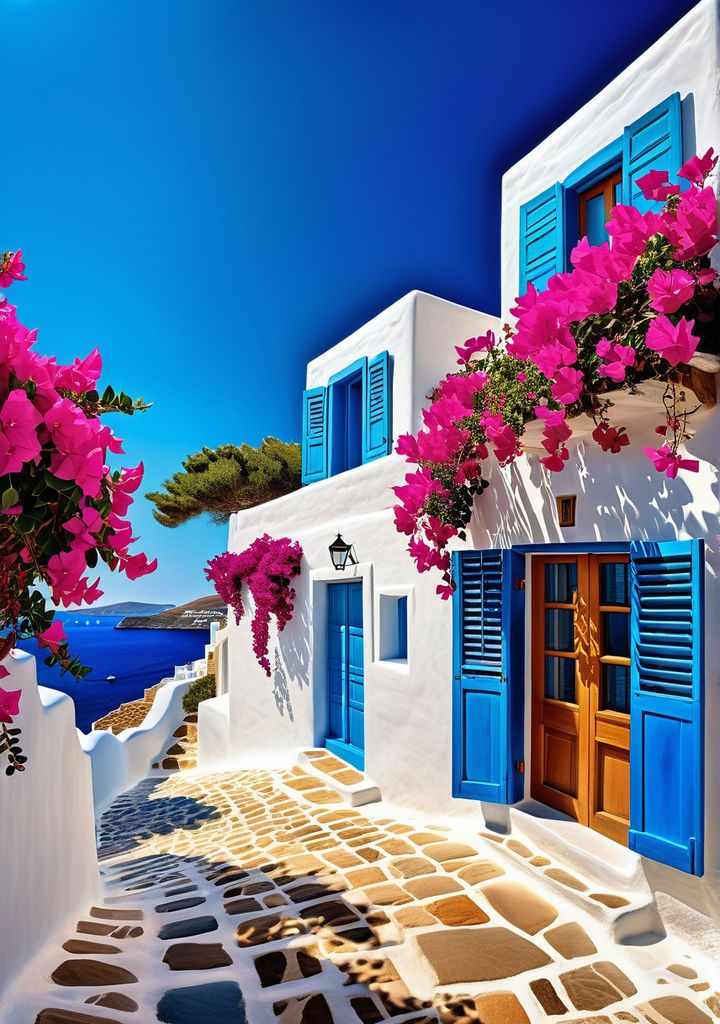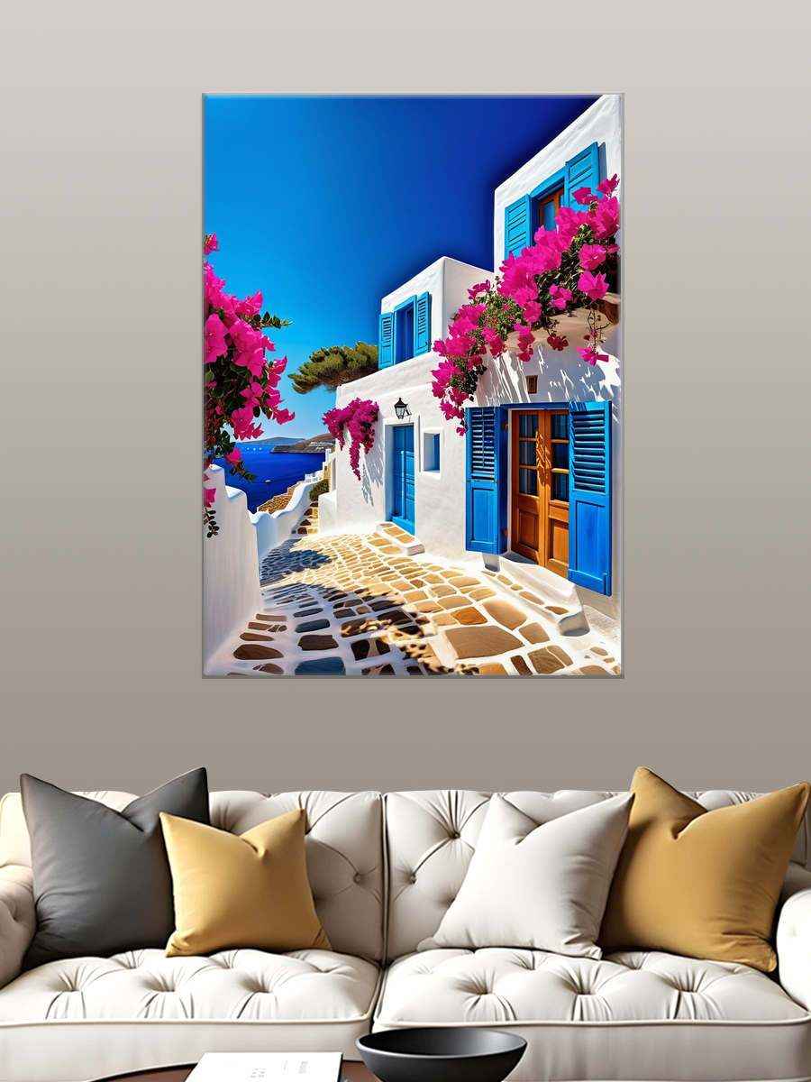 Описание: Картина 50 на 70 "Греческая идиллия" представляет собой яркое изображение живописной улочки, утопающей в цветах и солнечном свете. На картине изображены белоснежные дома с ярко-голубыми ставнями, окруженные пышной зеленью и цветущими бугенвиллеями. Основная идея картины — передать атмосферу спокойствия и уюта, которая царит в живописных уголках Греции. Эта картина вызывает чувства радости и умиротворения, словно переносит вас в солнечный день на острове, где время останавливается. Яркие цвета и детали создают ощущение живости и энергии, наполняя пространство светом и позитивом. Вы можете представить, как эта работа станет акцентом в вашем доме, вдохновляя вас каждый день. Картина идеально подойдет для оформления интерьеров в стиле средиземноморья, а также для современных или минималистичных пространств. Она станет прекрасным дополнением для гостиной, кухни или даже спальни, создавая атмосферу расслабления и радости. Повесьте её на стену, и она мгновенно оживит любое пространство, добавив нотку тепла и уюта.