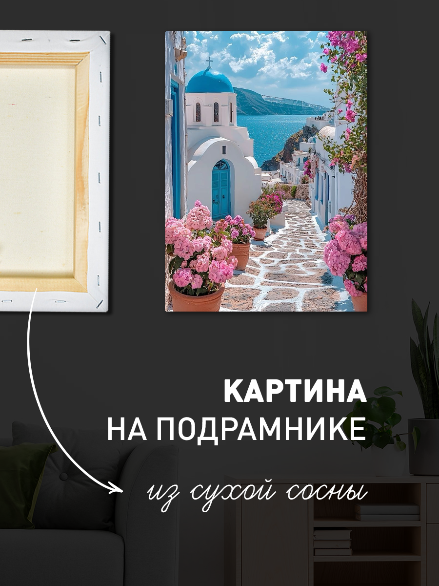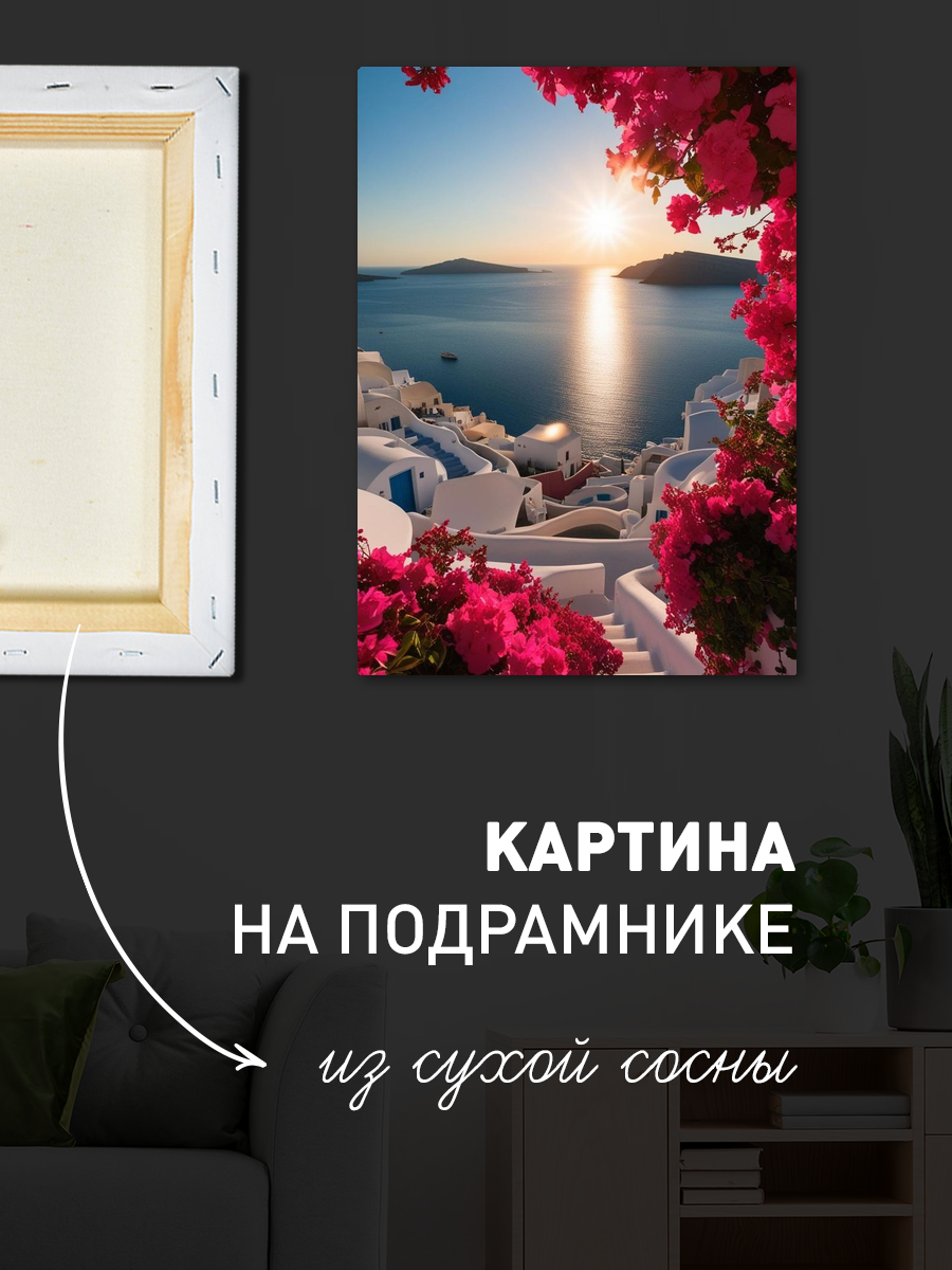 Описание: Картина 50 на 70 "Санторини в цветах" — это завораживающее изображение, которое переносит зрителя в солнечные уголки Греции. На картине запечатлен живописный вид на побережье Санторини, где белоснежные здания гармонично сочетаются с яркими цветами цветов. Основная идея работы — передать атмосферу спокойствия и умиротворения, которую можно ощутить, прогуливаясь по узким улочкам этого великолепного острова. Эта картина наполнена светом и теплом, она вызывает ощущение счастья и легкости. Яркие розовые цветы, обрамляющие изображение, придают ему особую изюминку и делают его уникальным. Каждая деталь, каждая линия на картине наполняет пространство радостью и позитивом, создавая идеальную обстановку для отдыха и вдохновения. "Санторини в цветах" прекрасно впишется в интерьер, оформленный в стиле прованс, минимализм или даже современный скандинавский дизайн. Она станет ярким акцентом в гостиной, спальне или кухне, напоминая о летних днях и путешествиях. Повесьте её на стену в зоне отдыха, и вы всегда будете чувствовать себя в отпуске, наслаждаясь атмосферой тепла и уюта. Эта картина не просто украшение, а настоящий источник вдохновения и позитива, который будет радовать глаз и поднимать настроение каждый день.