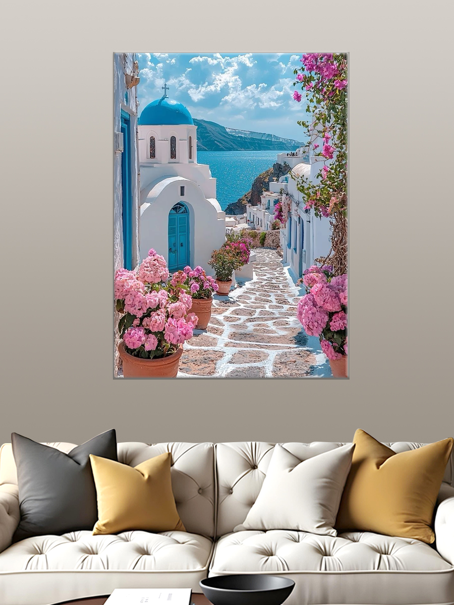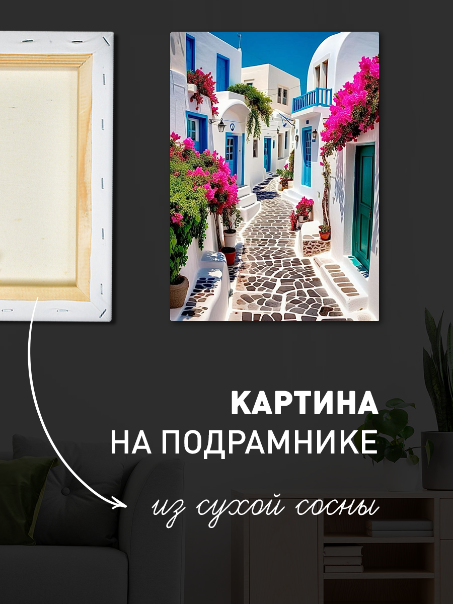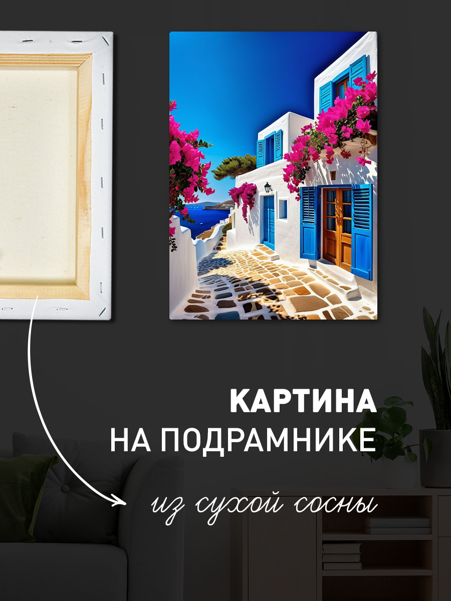 Описание: Картина 50 на 70 "Уголок Санторини" переносит зрителя в живописные улочки греческого острова Санторини, где белоснежные дома с ярко-голубыми крышами гармонично сочетаются с цветущими розовыми бугенвиллеями. Эта картина олицетворяет спокойствие и красоту природы, создавая атмосферу теплого летнего дня. Уникальность изображения заключается в тонком передаче света и тени, что позволяет зрителю почувствовать себя частью этой идиллии. Каждый элемент картины вызывает положительные эмоции: от ярких цветов до умиротворяющего вида на море. Она наполняет пространство теплом и радостью, пробуждая в душах людей воспоминания о летних каникулах и мечтах о путешествиях. Эта картина – не просто украшение; она создает уютную атмосферу, которая будет вдохновлять на новые свершения. "Уголок Санторини" идеально подойдет для гостиной, спальни или даже кухни, добавляя яркие акценты в любой интерьер. Она станет изюминкой вашего дома или подарком для близких, которые ценят красоту природы и мечтают о романтических путешествиях. Повесьте её на стену, и она мгновенно преобразит пространство, сделав его более живым и вдохновляющим.