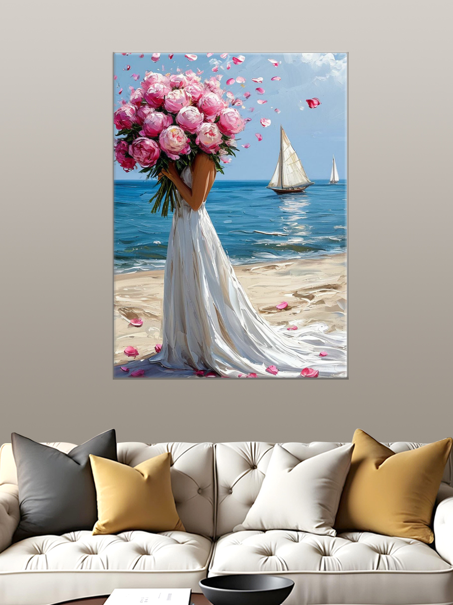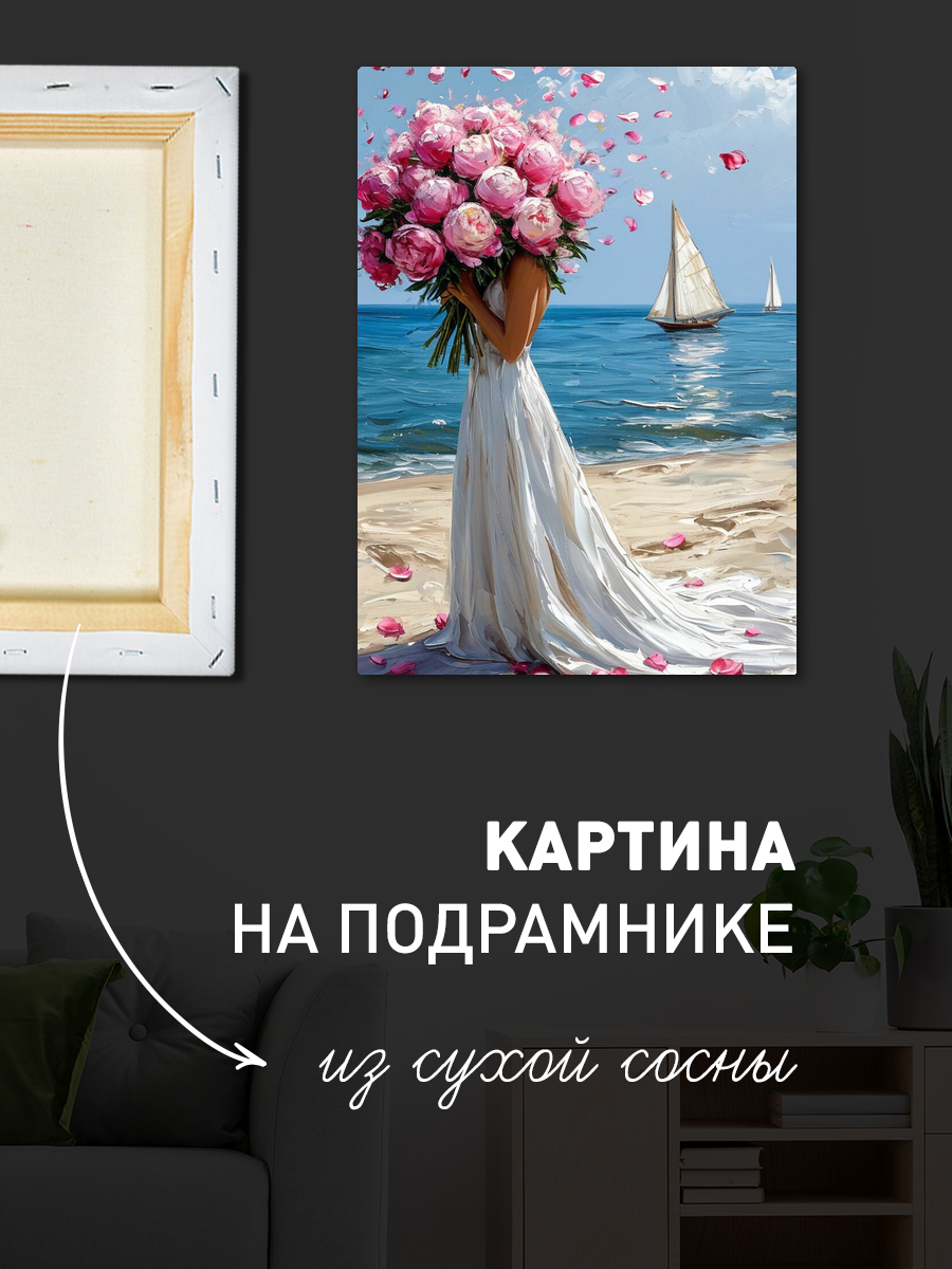 Описание: Картина 50 на 70 "Влюбленные" — это удивительное произведение искусства, которое передает атмосферу нежности и романтики. На ней изображена прекрасная невеста, стоящая на берегу моря, с огромным букетом розовых пионов в руках. Её белое платье струится на ветру, а яркие лепестки цветов, словно магия, рассыпаны вокруг, создавая ощущение волшебства. Эта картина вызывает теплые эмоции, напоминая о любви и счастье, что делает её идеальным дополнением к любому интерьеру. Мягкие пастельные тона и гармония цветовой палитры придают картине успокаивающее настроение, что позволяет ей стать центром внимания в любой комнате. Картина прекрасно впишется в спальню, гостиную или даже свадебный зал, привнося в атмосферу легкость и романтику. Она станет прекрасным подарком для влюбленных или для тех, кто ценит искусство, наполненное чувством и красотой. Не упустите возможность сделать свой дом еще более уютным и стильным с этой уникальной картиной.