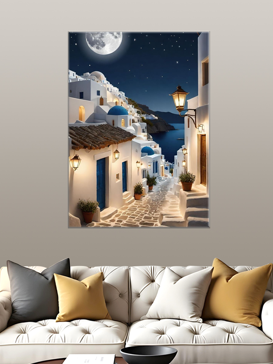 Описание: Картина 50 на 70 "Ночной уют" изображает живописный уголок греческой деревни, утопающей в лунном свете. Узкие улочки с белоснежными домами и яркими голубыми куполами создают атмосферу спокойствия и умиротворения, словно перенося зрителя на побережье Эгейского моря. Уникальность этой картины заключается в её способности передать всю красоту ночной греческой архитектуры, олицетворяя гармонию между природой и человеком. Эта картина вызывает теплые чувства и воспоминания о летних вечерах, когда лунный свет отражается в спокойных водах моря, создавая волшебную атмосферу. Она наполняет пространство уютом и романтикой, позволяя каждому взгляду увидеть нечто большее, чем просто изображение — это приглашение в мир мечты и покоя. Идеально подойдет для спальни, гостиной или кабинета, добавляя изысканности и стиля в любой интерьер. Также её можно повесить в кафе или ресторане, чтобы создать атмосферу уюта и расслабления для посетителей. "Ночной уют" станет акцентом, который привлечет взгляды и вызовет интерес, напоминая о том, как прекрасен мир вокруг нас.