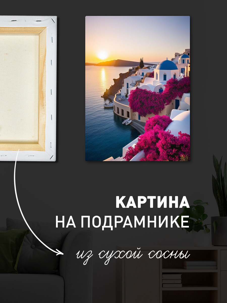 Описание: Картина 50 на 70 "Закат на Санторини". Эта восхитительная картина запечатлевает невероятный момент заката на знаменитом греческом острове Санторини. Яркие оттенки розового и оранжевого плавно перетекают в глубокий голубой океан, создавая гармоничную атмосферу спокойствия и умиротворения. Уникальность картины заключается в ее способности передать ощущение легкости и свободы, которое испытываешь, глядя на это живописное побережье. Эта картина вызывает тёплые эмоции и чувство счастья, словно вы находитесь на этом живописном острове, наслаждаясь природой и красотой заката. Каждое утро, проходя мимо неё, вы сможете погружаться в мир мечты и расслабления, отвлекаясь от повседневных забот. Картина отлично впишется в любой интерьер, будь то уютная гостиная, романтичный уголок спальни или даже стильный офис. Она создаст атмосферу уюта и вдохновения, добавив нотку элегантности и изысканности в ваше пространство. Повесьте ее на стену, чтобы каждый день наслаждаться этим великолепным видом и погружаться в мечты о путешествиях и приключениях.