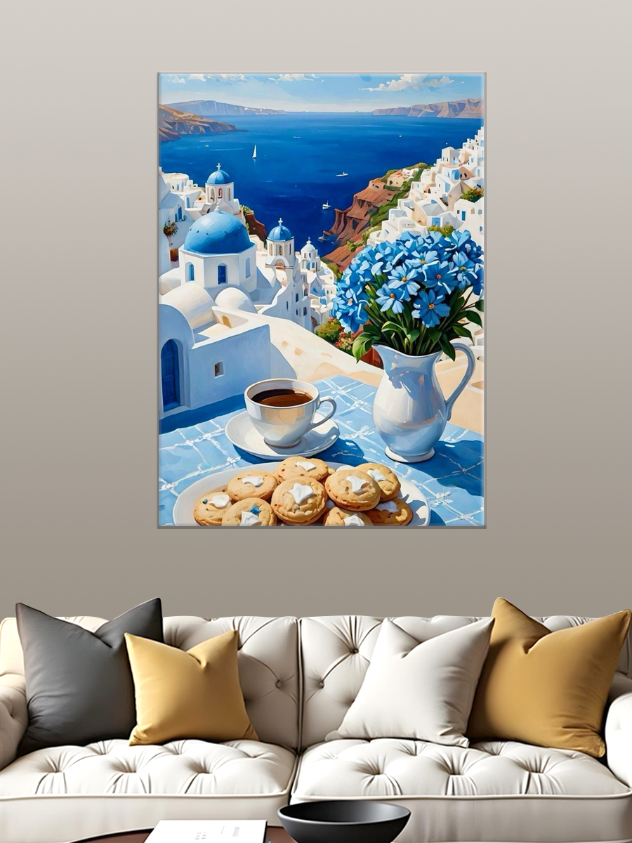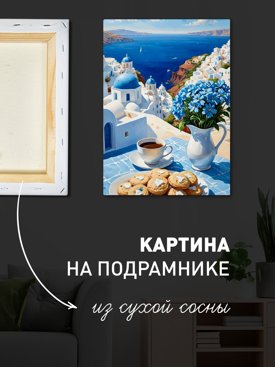 Описание: Картина 50 на 70 "Солнечное утро в Греции" изображает идиллический пейзаж с белоснежными домиками и ярко-голубыми куполами, утопающими в солнечном свете. На переднем плане расположена уютная чайная обстановка с чашкой кофе и тарелкой свежевыпеченных печений, что создает атмосферу спокойствия и уюта. Основная идея картины заключается в передаче атмосферы расслабления и наслаждения простыми радостями жизни, что делает её уникальной для любителей природы и тёплых воспоминаний о летнем отдыхе. Эта картина вызывает положительные эмоции, наполняя пространство теплом и гармонией. Она способна вдохновлять и поднимать настроение, погружая зрителя в мир ярких красок и спокойствия, где каждый день начинается с вдохновения и радости. Идеально подойдет для интерьеров в средиземноморском или современном стиле, а также для кухонь и гостиных, создавая атмосферу домашнего уюта. Повесьте её на стену, чтобы ежедневно наслаждаться атмосферой безмятежного утра на побережье, и пусть она станет центром внимания в вашем доме.
