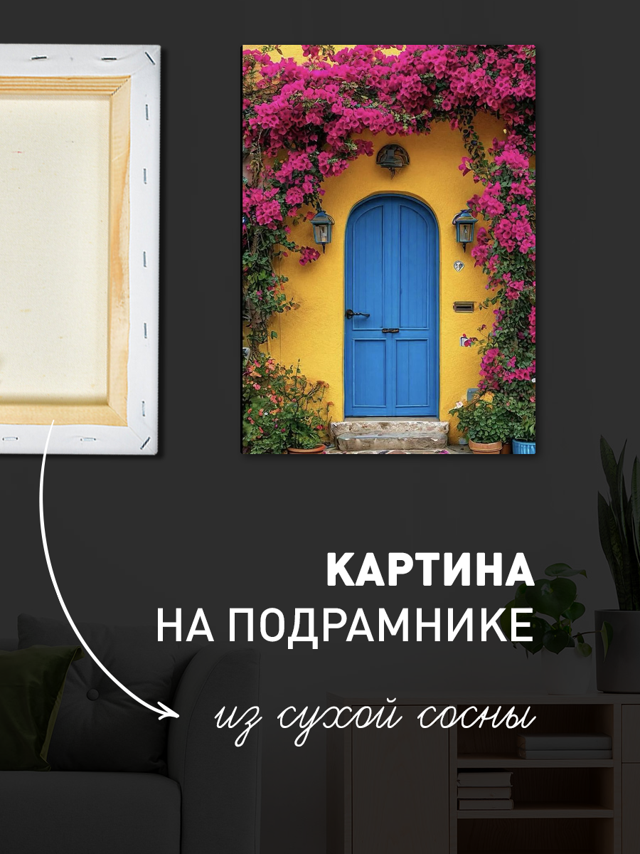Описание: Картина 50 на 70 "Цветочная дверь" создаёт атмосферу уюта и тепла, изображая яркую желтую стену, на фоне которой располагается изящная голубая дверь, обрамленная пышными розовыми цветами. Эта картина олицетворяет радость и светлую энергию, которую приносит природа в наш дом. Яркие оттенки вызывают чувство счастья и умиротворения, наполняя пространство жизнью и гармонией. Каждый раз, глядя на эту картину, вы будете ощущать, как будто находитесь на солнечном средиземноморском побережье, где цветы расцветают под ярким солнцем. Эмоции, которые она вызывает, могут стать источником вдохновения и хорошего настроения, наполняя ваш дом позитивом. Эта картина идеально впишется в интерьер, оформленный в светлых и теплых тонах. Она станет прекрасным акцентом в гостиной, на кухне или в прихожей, добавляя яркие нотки в любое пространство. Вы можете повесить её над диваном, на стене с книжными полками или в уютном уголке для чтения. "Цветочная дверь" — это не просто картина, это ворота в мир красоты и спокойствия, которые будут радовать вас и ваших гостей каждый день.