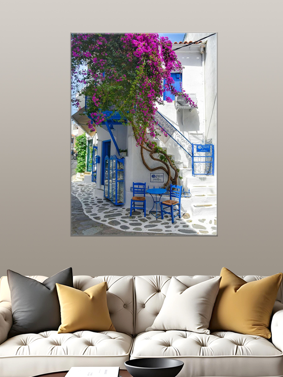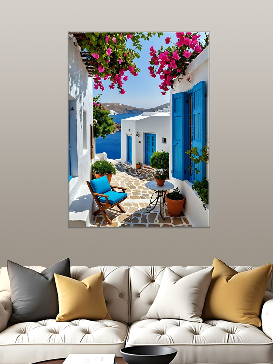 Описание: Картина 50 на 70 'Уголок у моря' — это живописное изображение уютной улочки на греческом острове, наполненной яркими цветами и солнечным светом. На картине запечатлены белоснежные стены домов, яркие голубые двери и окна, а также пышные зелёные растения и цветы, создающие атмосферу спокойствия и умиротворения. Уникальность этой картины заключается в её способности переносить зрителя на тёплые греческие просторы, вызывая воспоминания о летнем отдыхе и беззаботных днях. Эта картина вызывает положительные эмоции, наполняя пространство теплом и радостью. Она вдохновляет на мечты о путешествиях и гармонии с природой, побуждая к расслаблению и наслаждению моментом. Яркие цвета и жизнерадостный сюжет делают её идеальным дополнением к любому интерьеру. Картина прекрасно впишется в интерьеры в средиземноморском, современном или скандинавском стилях. Она станет отличным акцентом в гостиной, на кухне или в прихожей, создавая атмосферу уюта и лёгкости. Повесьте её на видное место, чтобы каждый день наслаждаться её красотой и напоминанием о летнем солнце.