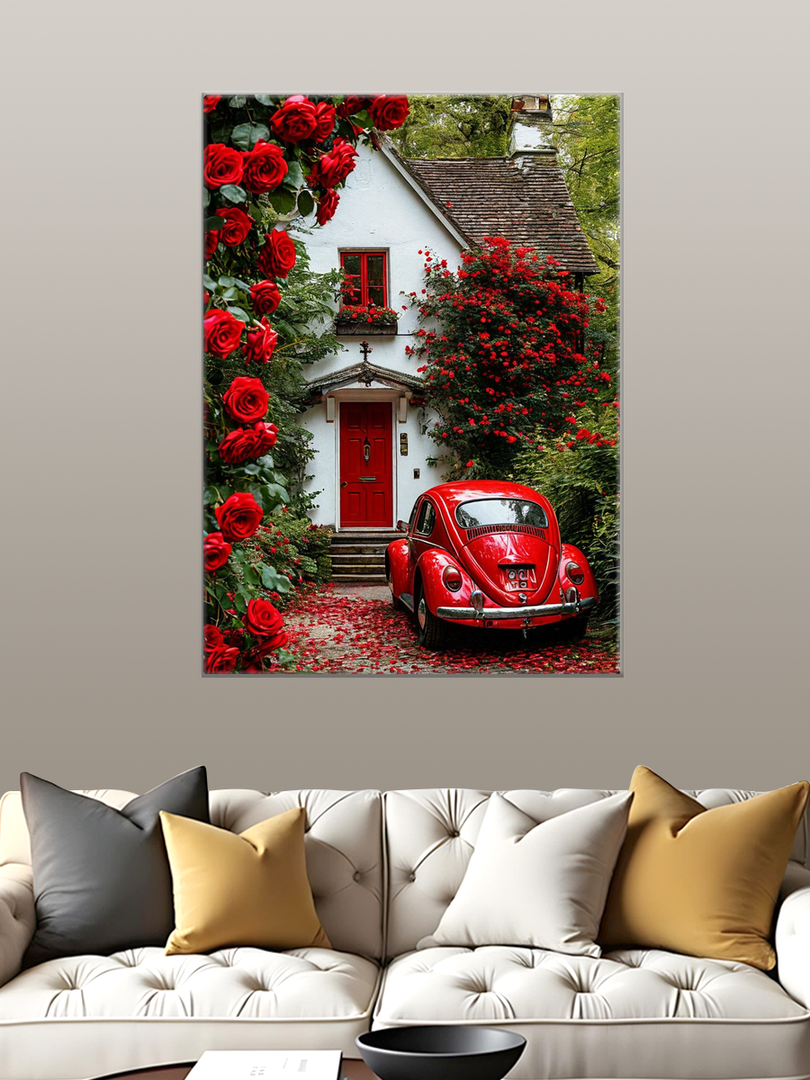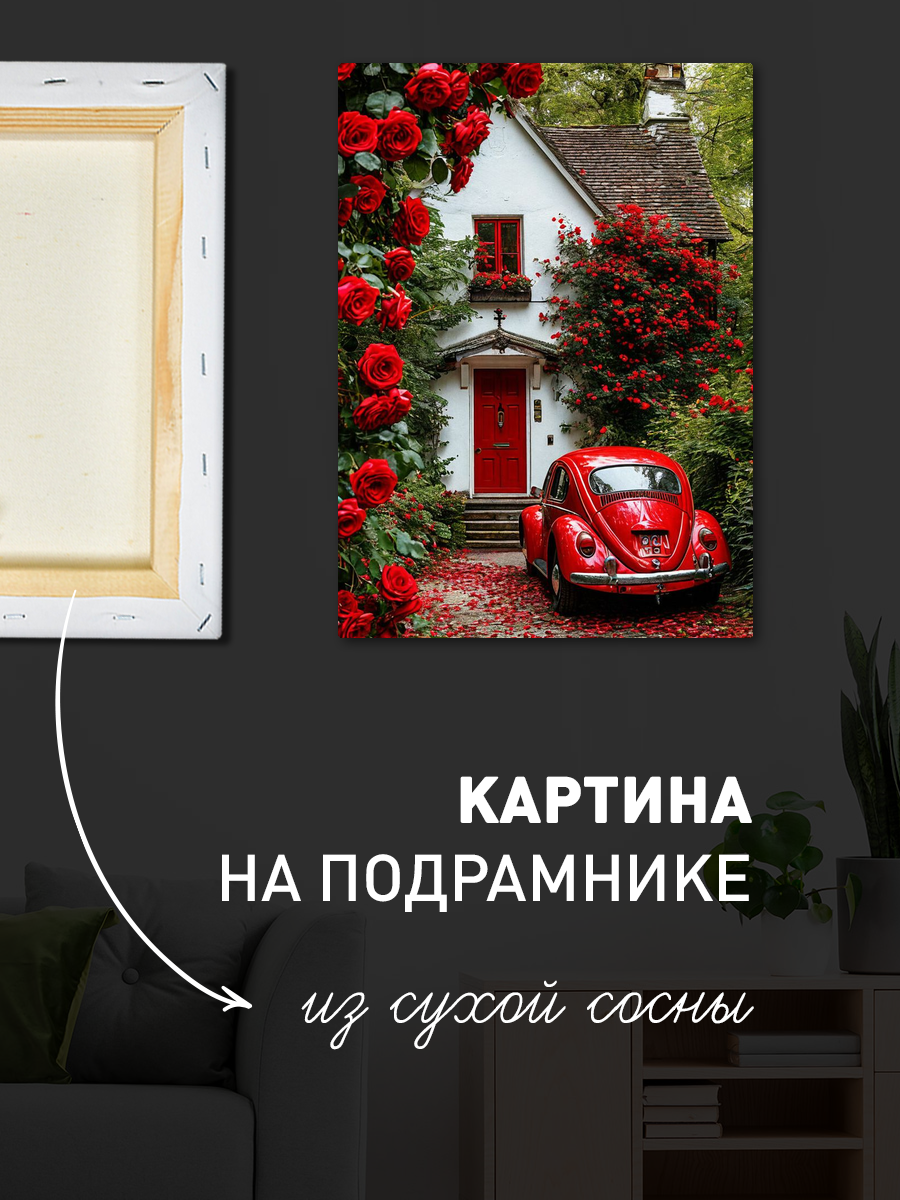 Описание: Картина 50 на 70 "Уютный уголок" изображает живописный домик, окруженный пышной зеленью и алыми розами, которые заполняют пространство яркими акцентами. Основная идея картины заключается в создании гармонии между природой и человеческим уютом. Каждый элемент, от красной двери до автомобиля, добавляет своеобразный шарм и тепло, привнося в атмосферу радостное умиротворение. Эта картина вызывает чувства спокойствия и счастья, напоминая о простых радостях жизни. Она может стать центром внимания в вашем интерьере, создавая уютную атмосферу и позитивные эмоции. Вообразите, как она будет смотреться в гостиной, где каждый гость сможет насладиться её красотой, или в спальне, где она будет способствовать расслаблению и умиротворению. "Уютный уголок" идеально впишется как в классический, так и в современный интерьер, добавляя нотки романтики и тепла. Ее можно повесить на стену над диваном, в холле или на кухне, где она будет радовать вас каждый день. Эта картина – не просто декор, а эмоциональный акцент, который сделает ваш дом более живым и привлекательным.