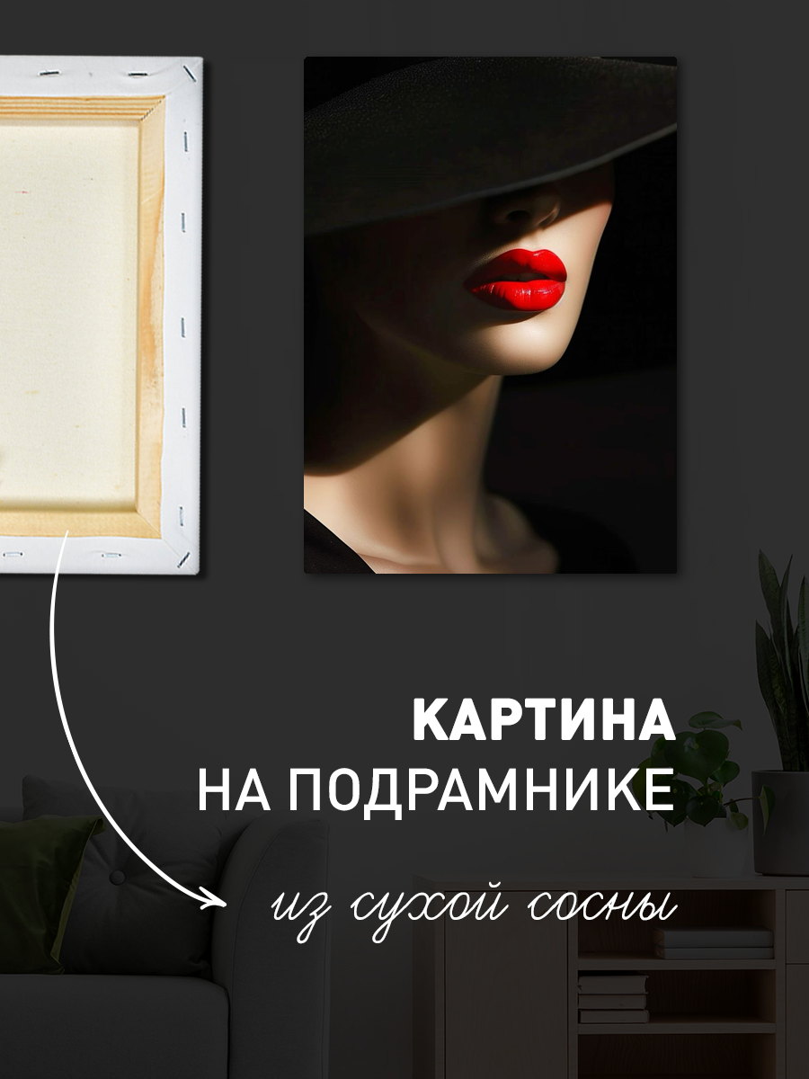 Описание: Картина 50 на 70 "Тайна стиля" представляет собой изысканное изображение женского лица, частично скрытого под широкополой шляпой. Эта работа привлекает внимание благодаря контрасту между темным фоном и яркими красными губами, создавая ощущение загадочности и элегантности. Основная идея картины заключается в сочетании красоты и таинственности, что делает её уникальной. Она вызывает чувства уверенности и притягательности, погружая зрителя в мир изысканности и стиля. "Тайна стиля" идеально подойдёт для современных интерьеров, таких как гостиные, спальни или даже офисные пространства, добавляя им нотку шика и утонченности.