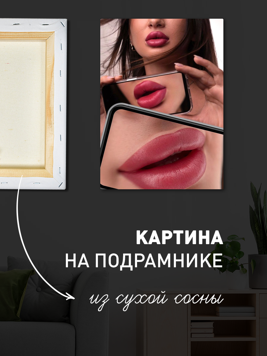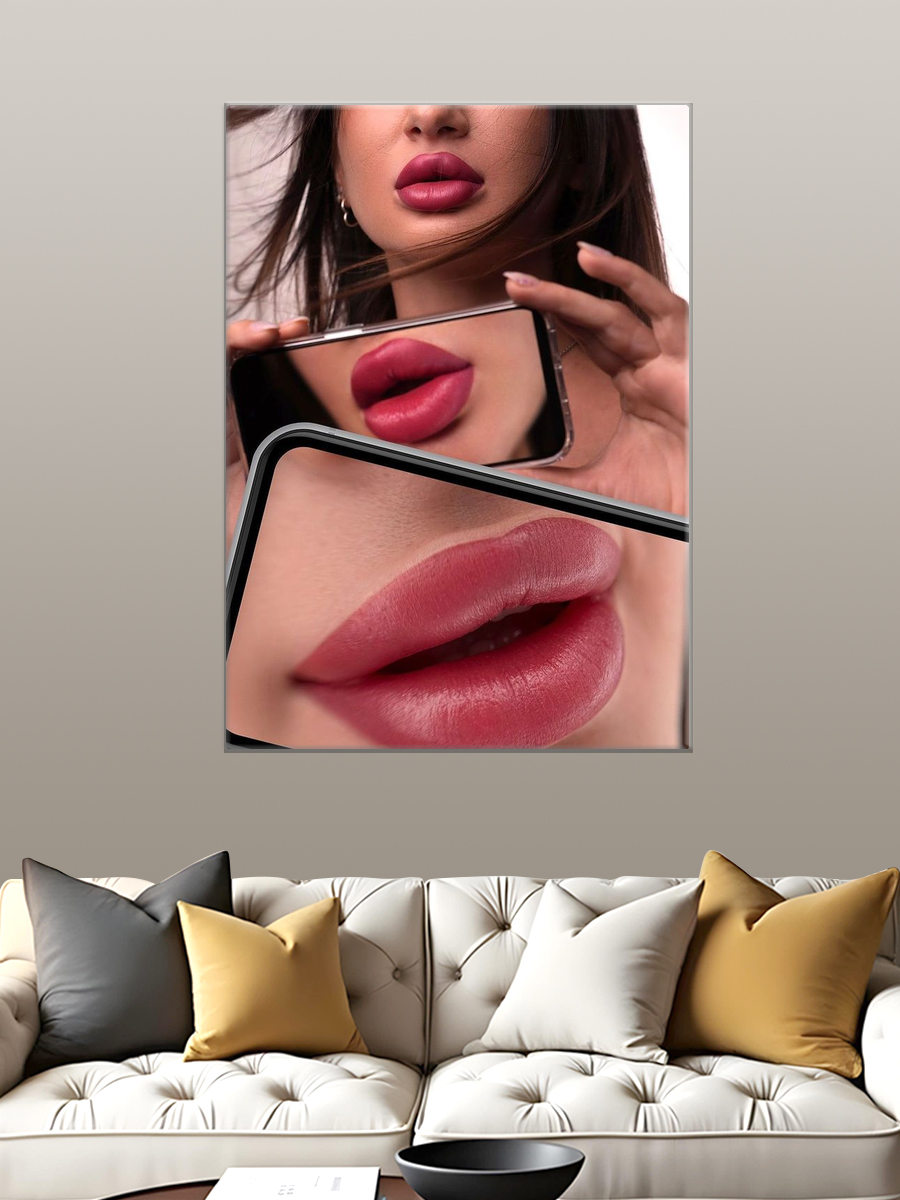 Описание: Картина 50 на 70 "Игра отражений" представляет собой захватывающий портрет женщины с выразительными губами, отраженными в зеркале смартфона. Эта работа передает уникальную идею о том, как современная красота и технологии переплетаются в нашей жизни. Яркие оттенки красного и розового придают картине динамичность и жизненность, а мягкие бежевые тона создают уютную атмосферу. Картина вызывает множество эмоций: от восхищения до размышлений о том, как мы воспринимаем себя в цифровом мире. Она заставляет задуматься о внутренней красоте и самовыражении, что делает её не только визуальным, но и глубоким эмоциональным произведением. Эта картина прекрасно дополнит интерьер в современных стилях, таких как минимализм или скандинавский, а также будет гармонировать с более классическими интерьерами, добавляя в них нотку современности. Её можно повесить в спальне, гостиной или даже в кабинете, где она будет вдохновлять и поднимать настроение. "Игра отражений" станет ярким акцентом в любом пространстве, привлекая внимание и поднимая настроение.