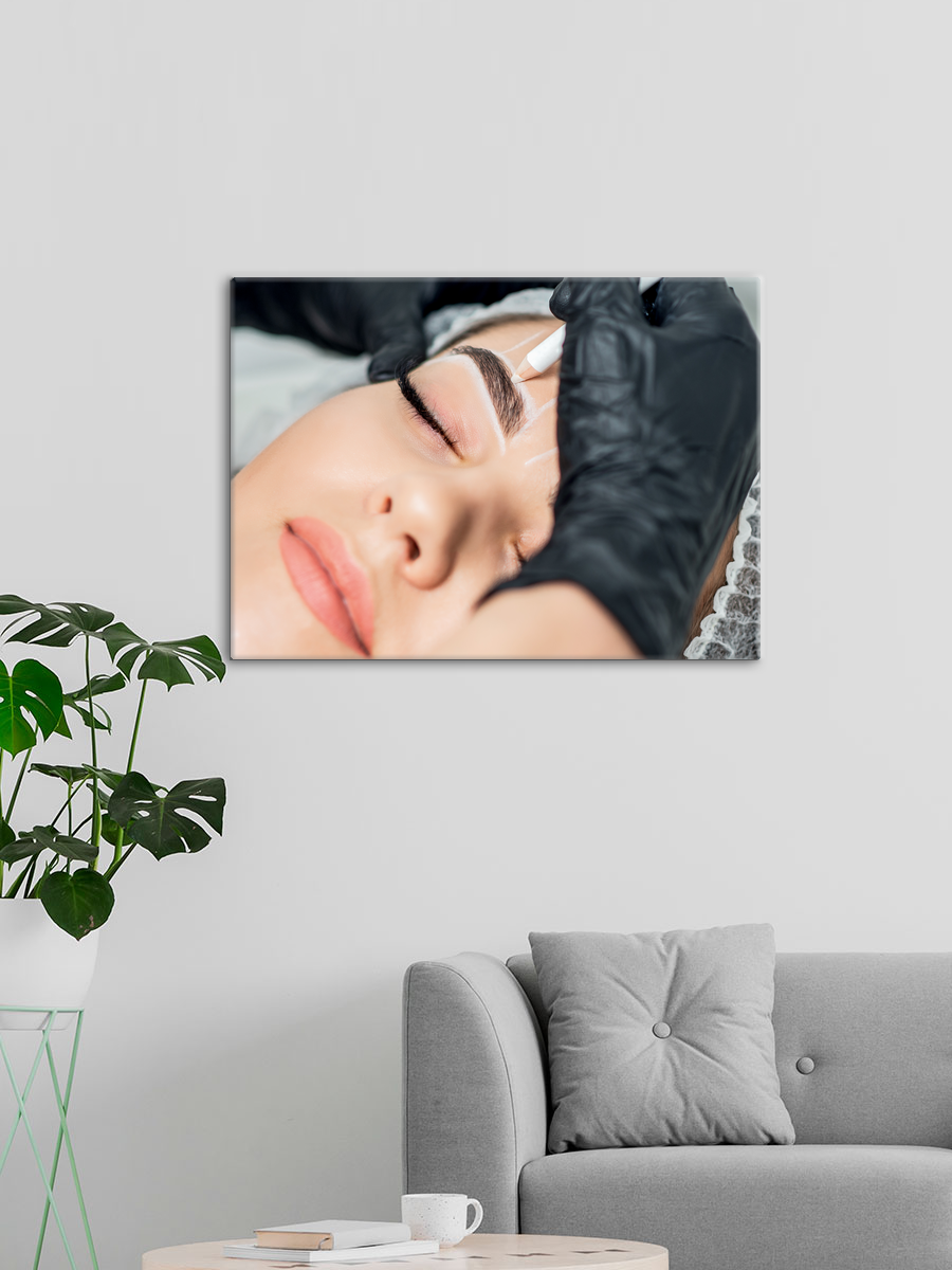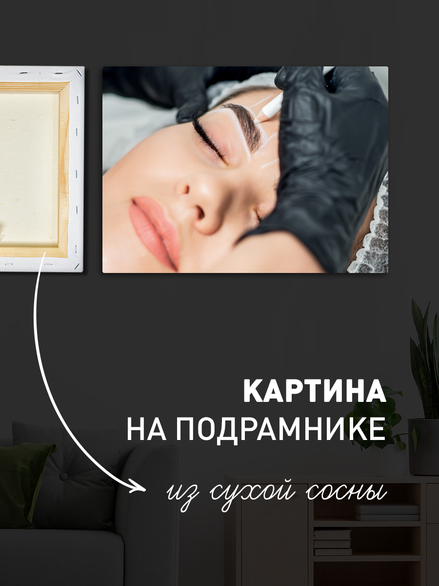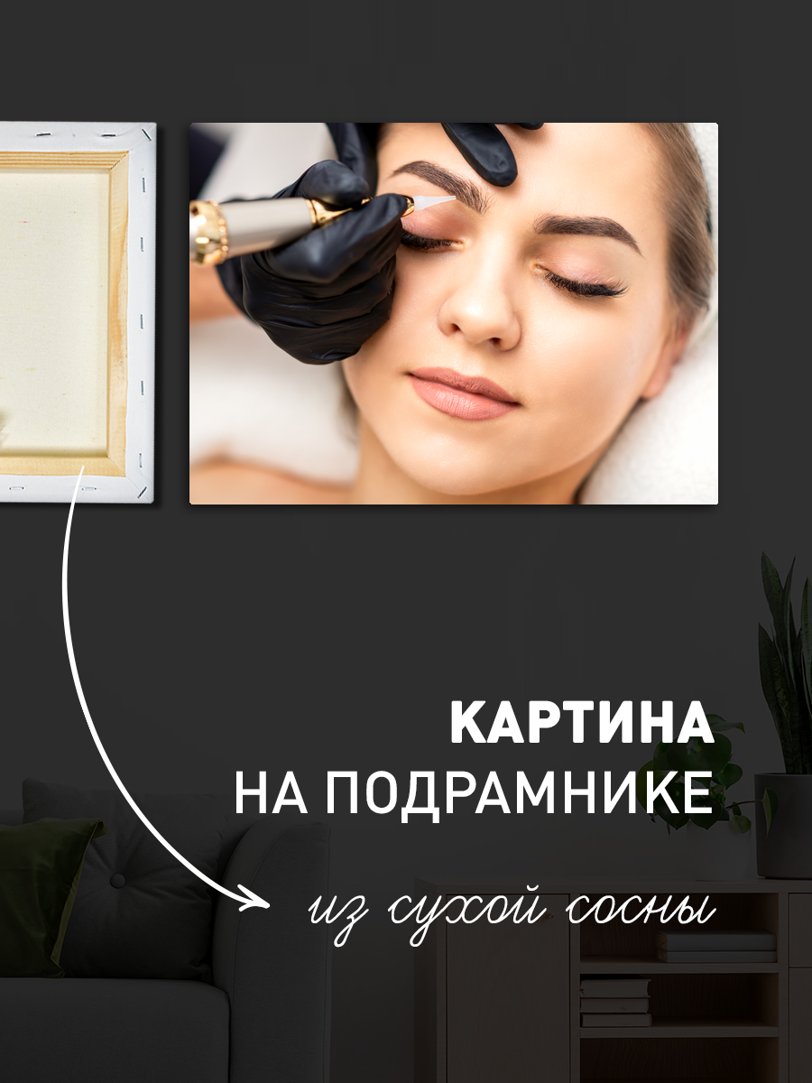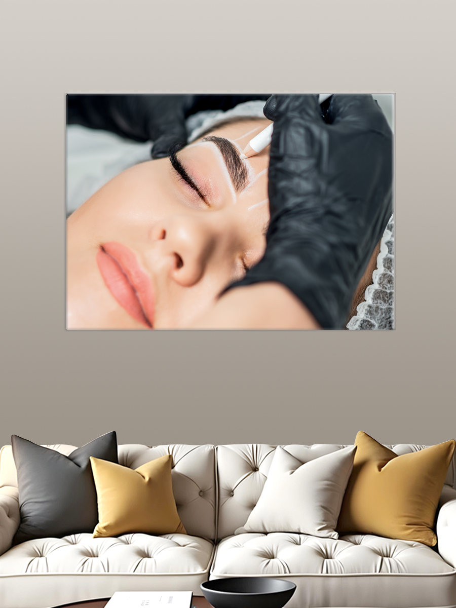Описание: Картина 50 на 70 'Эстетика ухода за собой' представляет собой нежное изображение, на котором запечатлен процесс создания идеальных бровей. На картине мастер, в черных перчатках, аккуратно проводит линию над закрытыми веками модели, создавая атмосферу уюта и заботы. Эта работа погружает зрителя в мир красоты и самосовершенствования, отражая стремление к гармонии и ухоженности. Эмоции, которые вызывает эта картина, варьируются от спокойствия до вдохновения. Нежные оттенки и мягкие линии создают ощущение расслабления, а внимание к деталям передает чувство профессионализма и заботы. Она наполняет пространство теплом и позитивной энергией, побуждая зрителя задуматься о своих собственных ритуалах красоты и уходе за собой. Эта картина станет прекрасным дополнением для уютной спальни, ванной комнаты или салона красоты. Ее можно повесить над туалетным столиком, создавая атмосферу личного пространства для заботы о себе, или разместить в зоне отдыха, чтобы вдохновлять гостей на приятные беседы. 'Эстетика ухода за собой' гармонично впишется в интерьер, оформленный в минималистичном, скандинавском или современном стиле, подчеркивая его индивидуальность и уют.