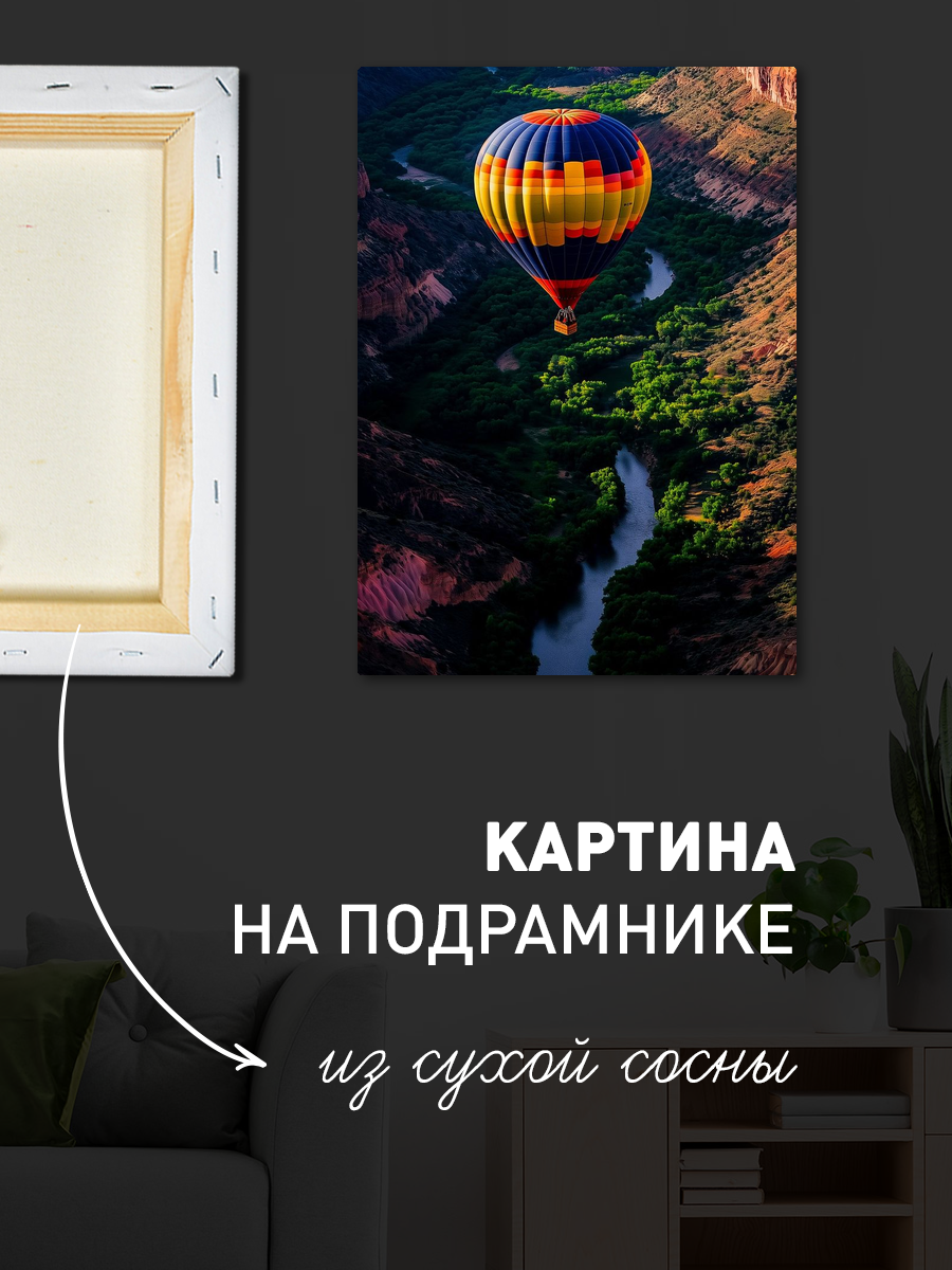 Описание: Картина 50 на 70 "Воздушный шар над каньоном" представляет собой захватывающий пейзаж, где яркий воздушный шар плавно парит над величественными каньонами и зелеными лугами. Эта работа погружает зрителя в атмосферу свободы и приключений, напоминая о том, как важно иногда оторваться от повседневной рутины и увидеть мир с новой высоты. Уникальность картины заключается в контрасте между яркими цветами шара и спокойными тонами природы, что создает ощущение гармонии и умиротворения. Эта картина вызывает чувства радости и вдохновения, наполняя пространство энергией и позитивом. Она словно приглашает зрителя в путешествие, пробуждая в нем желание исследовать новые горизонты и наслаждаться каждым моментом жизни. Идеально подходит для различных интерьеров — от уютной гостиной до креативного рабочего пространства. Картина станет ярким акцентом на стене, добавляя живости и динамики в любое помещение. Разместите её над диваном или в кабинете, и она будет радовать вас и ваших гостей, наполняя атмосферу светом и теплом.
