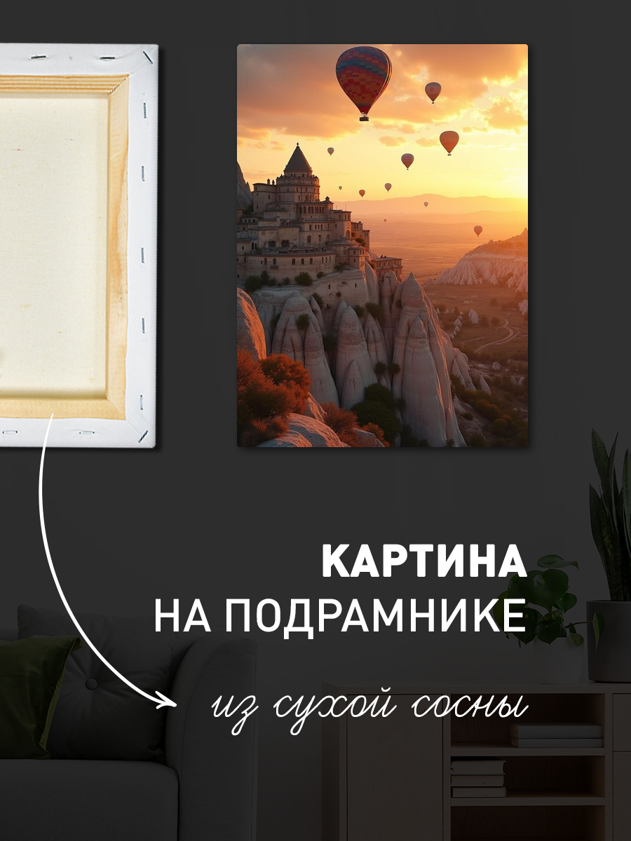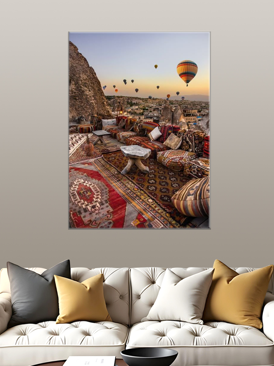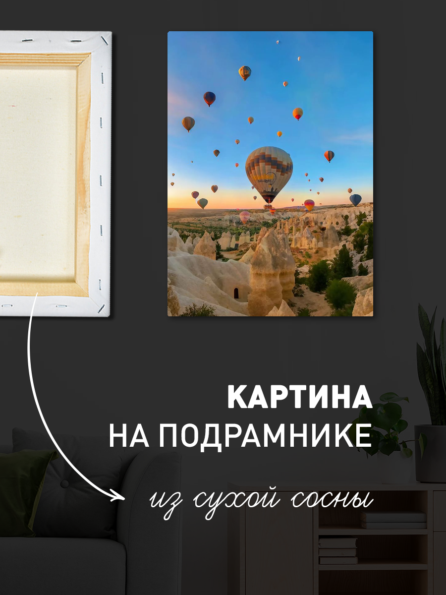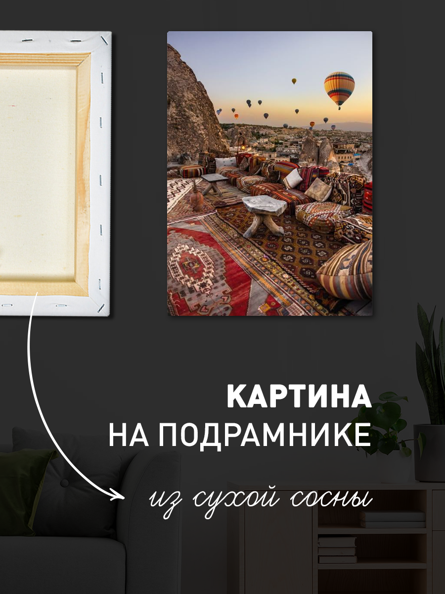 Описание: Картина 50 на 70 "Тепло воздушных шаров" переносит зрителя в сказочный мир, где уютная терраса с яркими коврами и подушками встречает утренний свет. На фоне величественных скал и бескрайнего неба парят разноцветные воздушные шары, наполняя картину жизнью и радостью. Уникальность этой работы заключается в сочетании теплых и холодных тонов, создающих гармонию и уют. Эта картина вызывает положительные эмоции: ощущение спокойствия, счастья и умиротворения. Она словно приглашает вас на завтрак с друзьями, обнимая теплом и светом, что особенно приятно в холодные дни. Вы сможете представить себе, как мягкий свет солнца проникает в ваше пространство, создавая атмосферу тепла и уюта. Идеально подойдет для интерьеров в стиле бохо, кантри или эко. Вы можете разместить её в гостиной, кабинете или даже на кухне, где она станет центром притяжения для гостей. Картина "Тепло воздушных шаров" станет не только украшением вашего дома, но и источником вдохновения и позитивного настроения.
