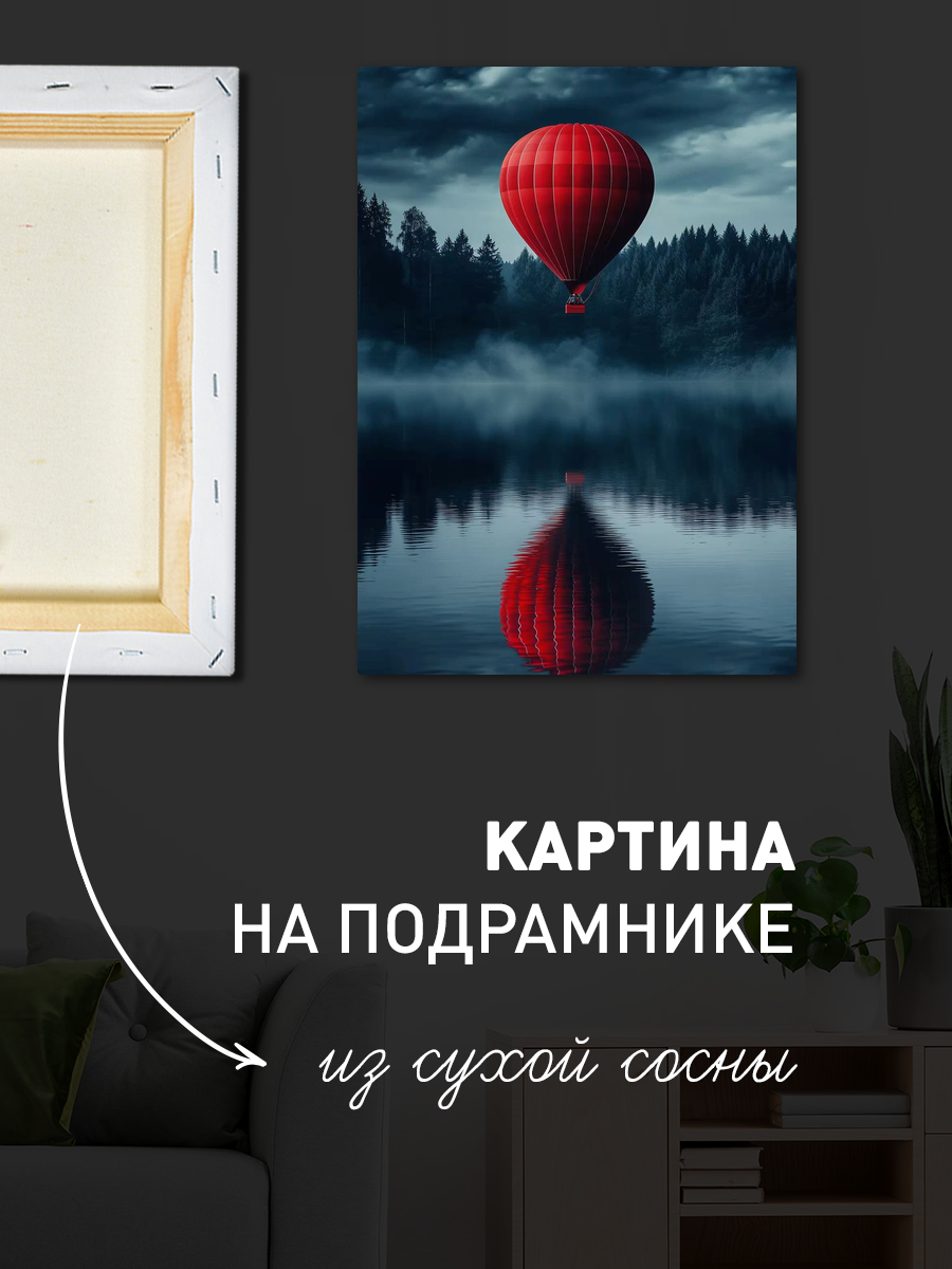 Описание: Картина 50 на 70 "Воздушный шар" представляет собой завораживающий пейзаж, на котором изображен яркий красный воздушный шар, парящий над спокойным озером, окруженным темными лесами под облачным небом. Уникальность этой картины заключается в контрасте между ярким цветом шара и мрачной атмосферой фона, что создает ощущение свободы и мечтательности. Эта картина вызывает глубокие эмоции: она наполняет пространство чувством спокойствия и умиротворения, приглашая зрителя погрузиться в мир фантазий и приключений. При взгляде на нее возникает желание подняться в небо и увидеть мир с высоты птичьего полета. Идеально подойдет для современных интерьеров, таких как гостиные, кабинеты или спальни, добавляя яркий акцент в нейтральные палитры. Она также станет отличным подарком для любителей путешествий и приключений, придавая особый шарм любому пространству. Не упустите возможность украсить свой дом этим произведением искусства, которое вдохновляет и радует глаз!