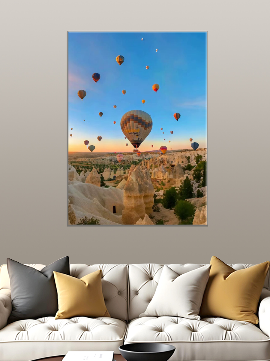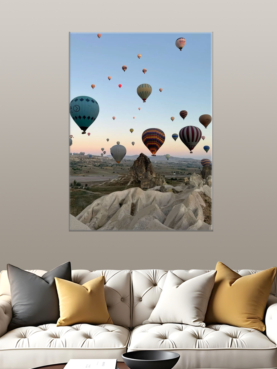 Описание: Картина 50 на 70 "Воздушные шары над долиной" привносит в ваш интерьер атмосферу волшебства и свободы. На полотне изображены множество красочных воздушных шаров, парящих в ясном голубом небе над удивительными скальными образованиями и зелеными лугами. Эта картина захватывает дух своим великолепием и необычностью, вызывая у зрителя чувство легкости и радости. Каждый шар имеет свои уникальные цвета и узоры, что делает картину поистине уникальной. Эта работа идеально подходит для тех, кто ценит красоту природы и мечтает о новых открытиях. Она будет великолепно смотреться в гостиной, где сможет стать фокусом внимания, привлекая восторженные взгляды гостей. Также картина украсит интерьер спальни, создавая атмосферу спокойствия и уюта. Представьте, как каждый день, проходя мимо этой картины, вы будете чувствовать прилив вдохновения и желания путешествовать. "Воздушные шары над долиной" — это не просто картина, это приглашение в мир грез и невероятных приключений.