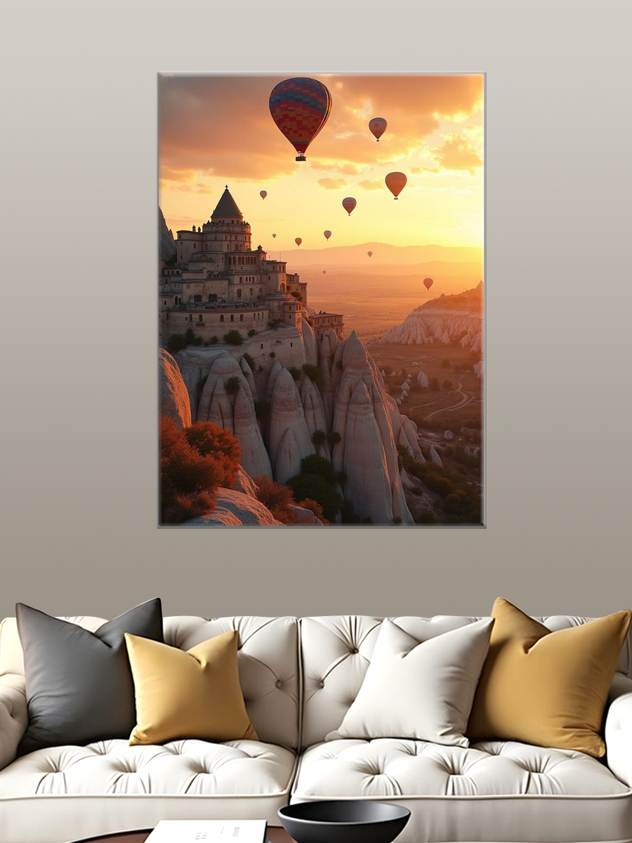 Описание: Картина 50 на 70 "Волшебство воздушных шаров" представляет собой завораживающий пейзаж, на котором величественный замок возвышается среди живописных скал, обрамленных мягким светом заката. В небе парят яркие воздушные шары, добавляя динамику и атмосферу праздника. Основная идея произведения заключается в контрасте между стабильностью замка и легкостью шаров, что символизирует мечты и стремление к свободе. Эта картина вызывает ощущение спокойствия и умиротворения, погружая зрителя в атмосферу волшебства. Теплые оранжевые и бежевые тона заката создают уютное настроение, наполняя пространство теплом и гармонией. Уникальность картины заключается в ее способности вдохновлять и пробуждать позитивные эмоции, напоминая о том, что мечты могут сбываться. Картина идеально подойдет для различных интерьеров: от уютной гостиной до романтичной спальни. Она станет замечательным акцентом в пространстве, привнося в него нотку сказки и нежности. Также ее можно разместить в офисе, где она будет вдохновлять на новые идеи и творческие свершения. Эта картина создаст атмосферу уюта и комфорта, делая любое пространство более гармоничным и привлекательным.